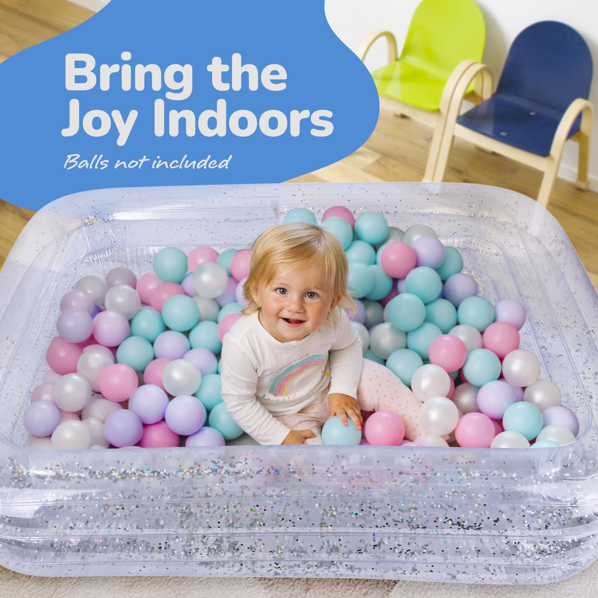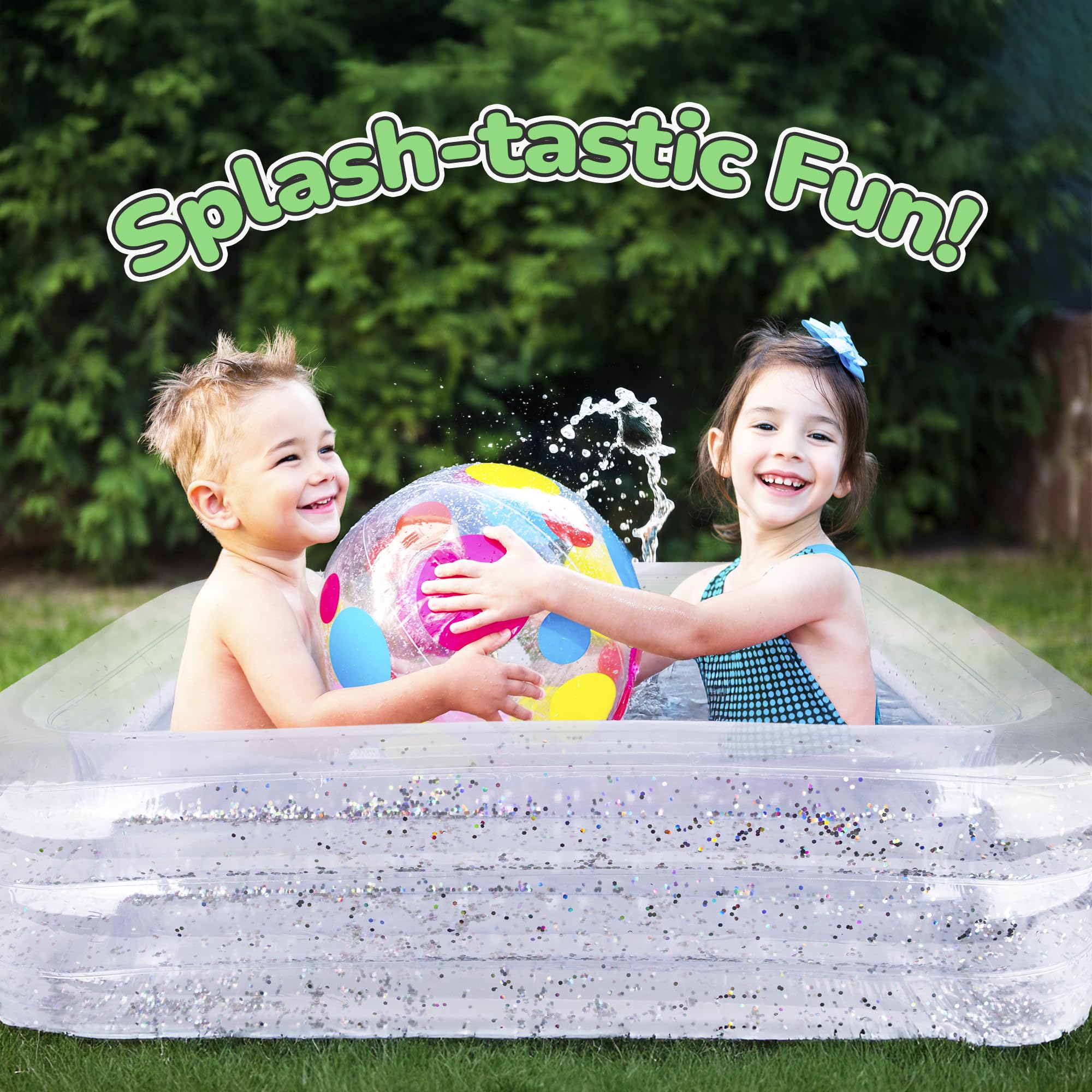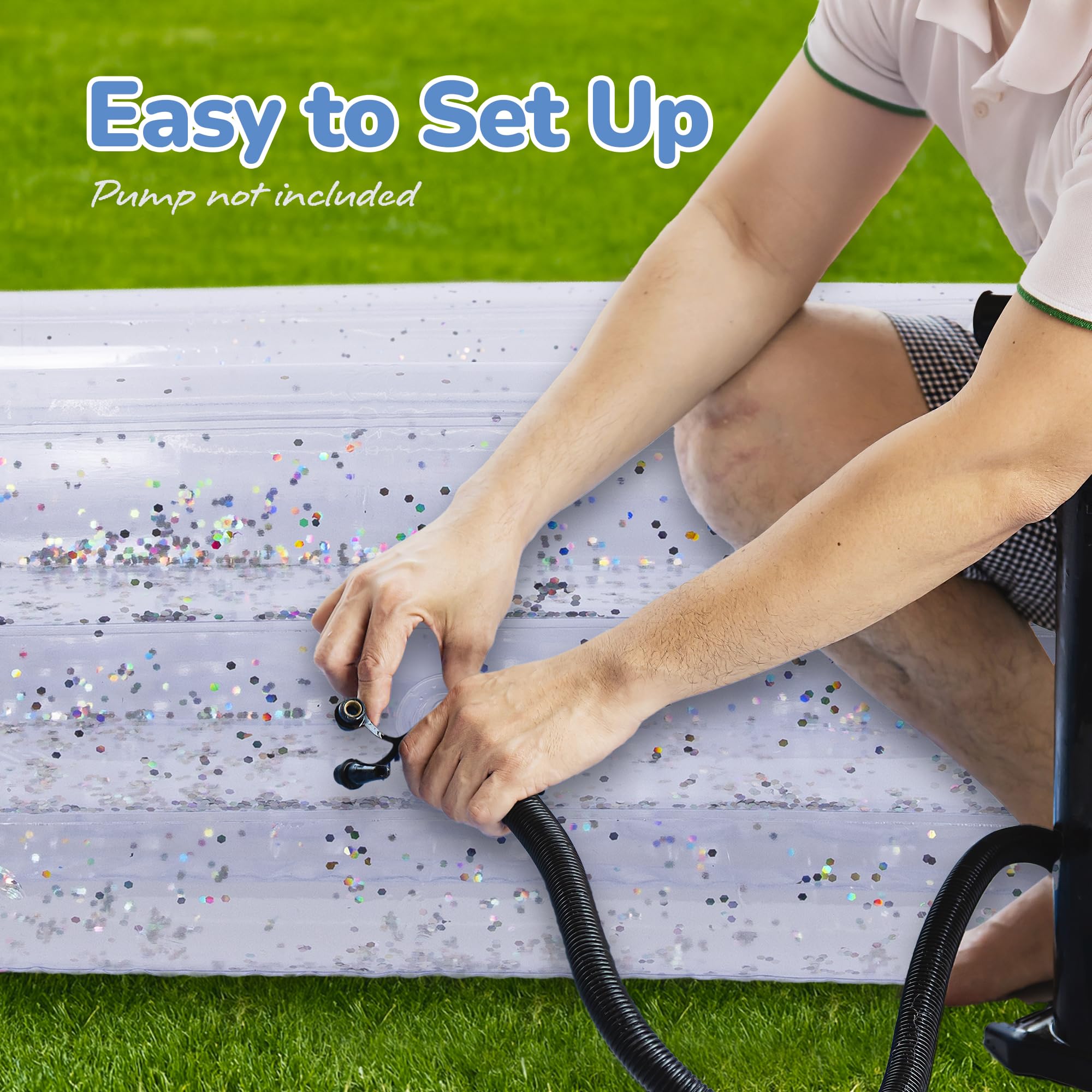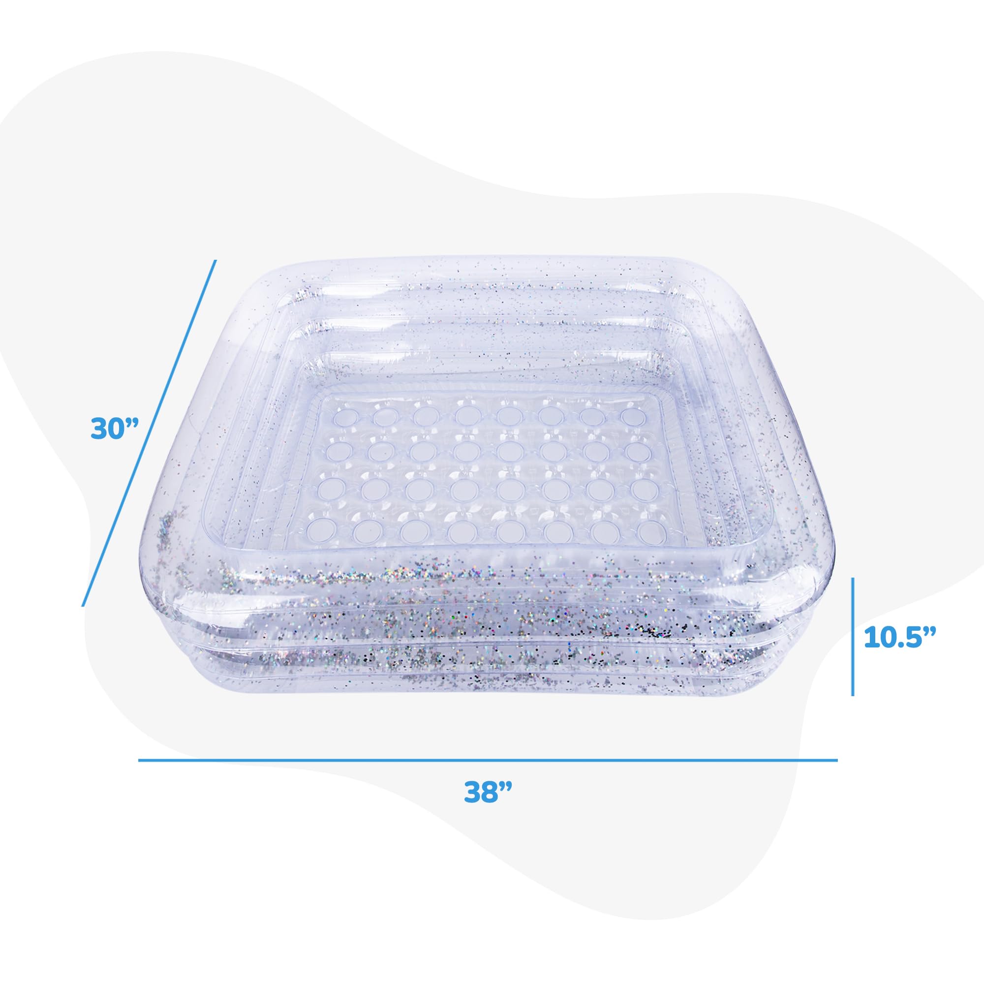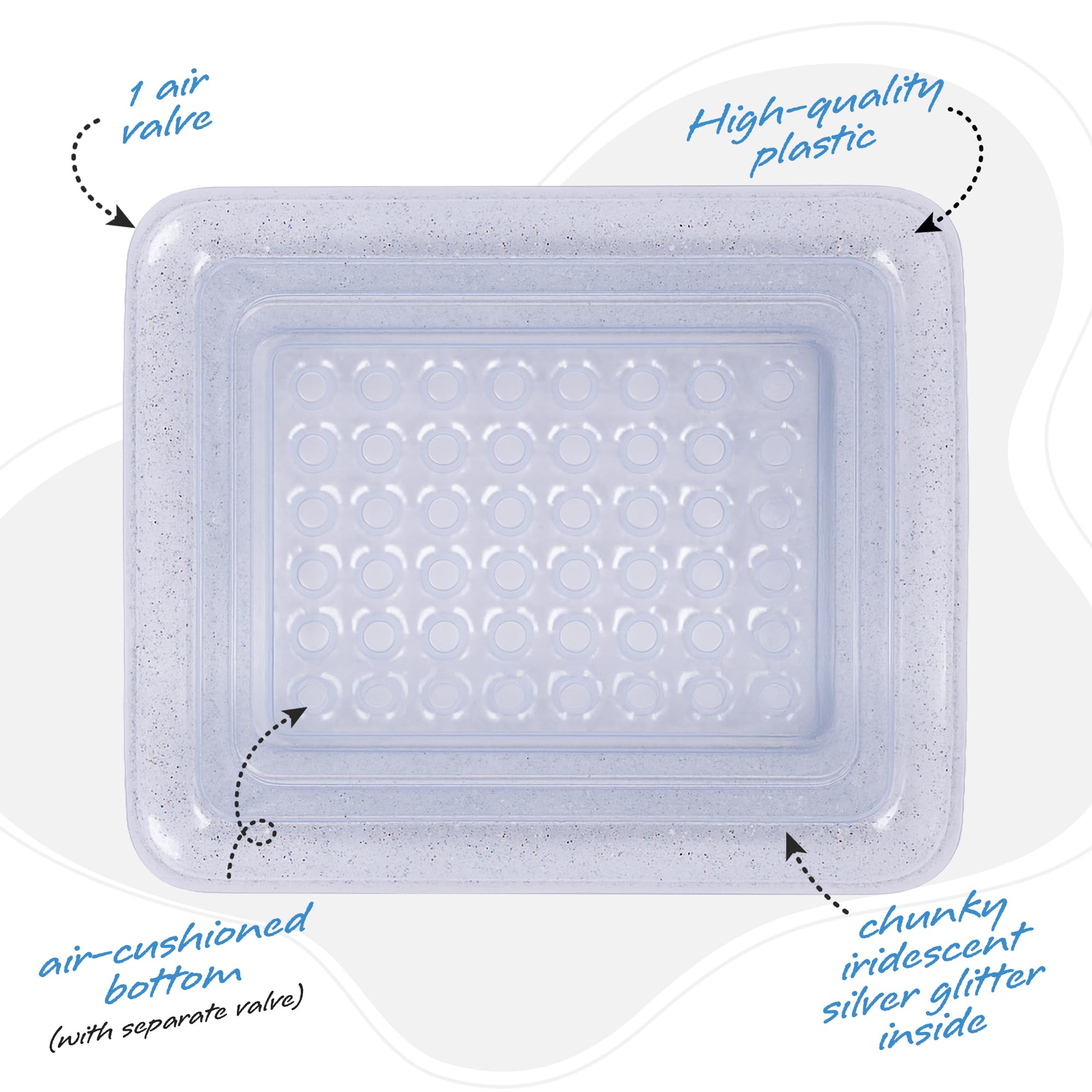 THE COMPLIMENT-GETTER: A backyard pool you’ll want to show off. No jarring colors here. Transparent, with chunky iridescent silver glitter inside, our splash pad captures the kids’ imagination while blending into your space.