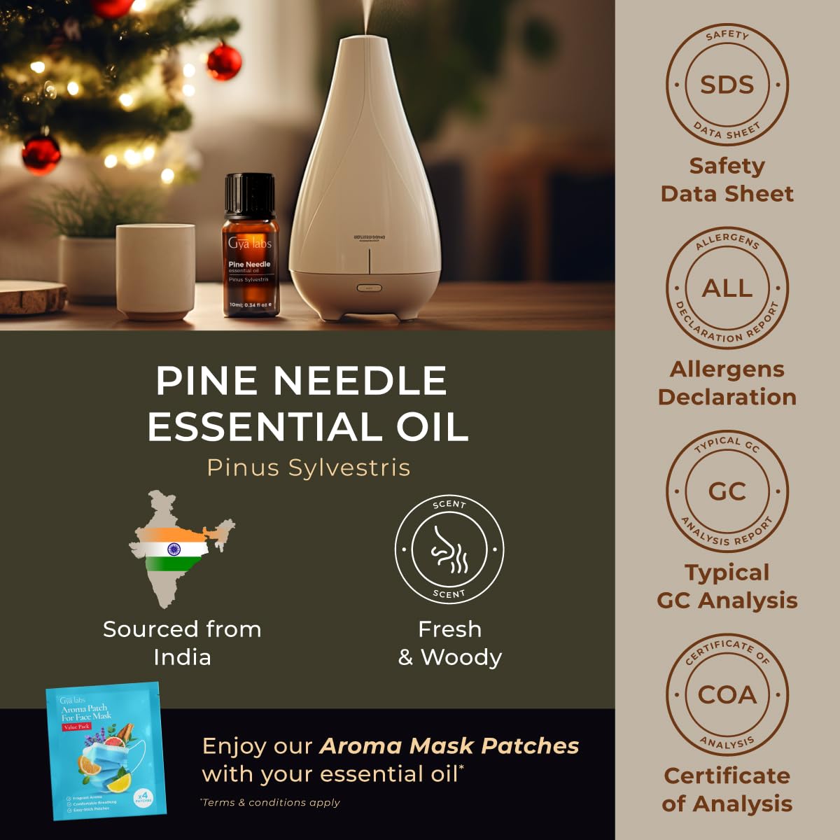 Quality assured for your peace of mind. Gya Labs Pine Needle Essential Oil is 100% natural and undergoes strict quality controls. Consult a doctor if you have any existing medical concerns.