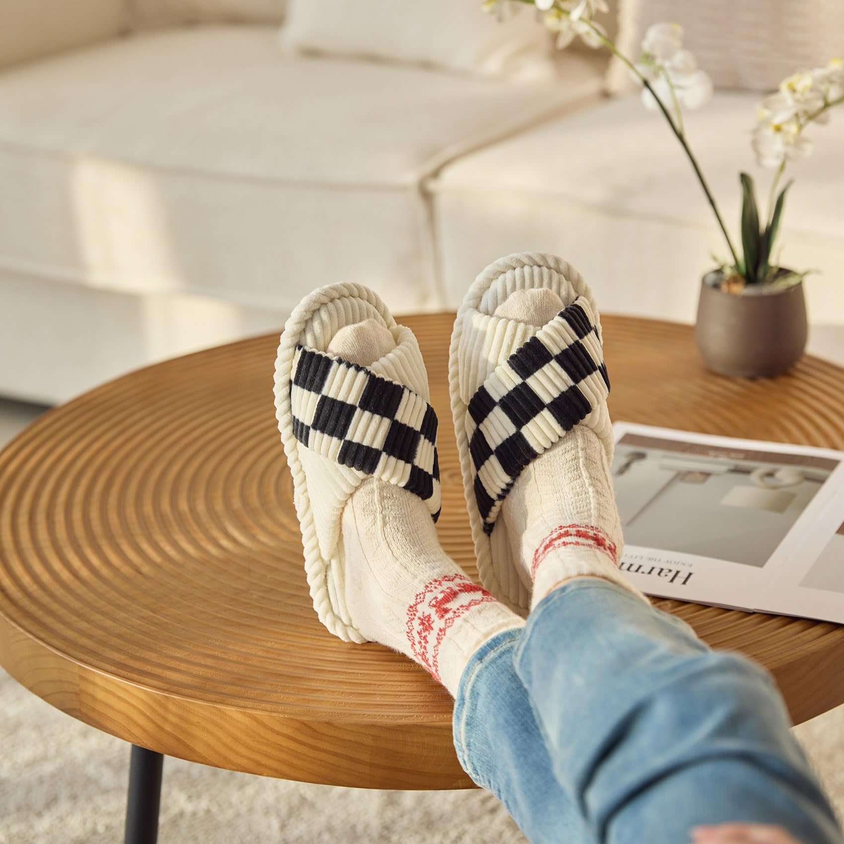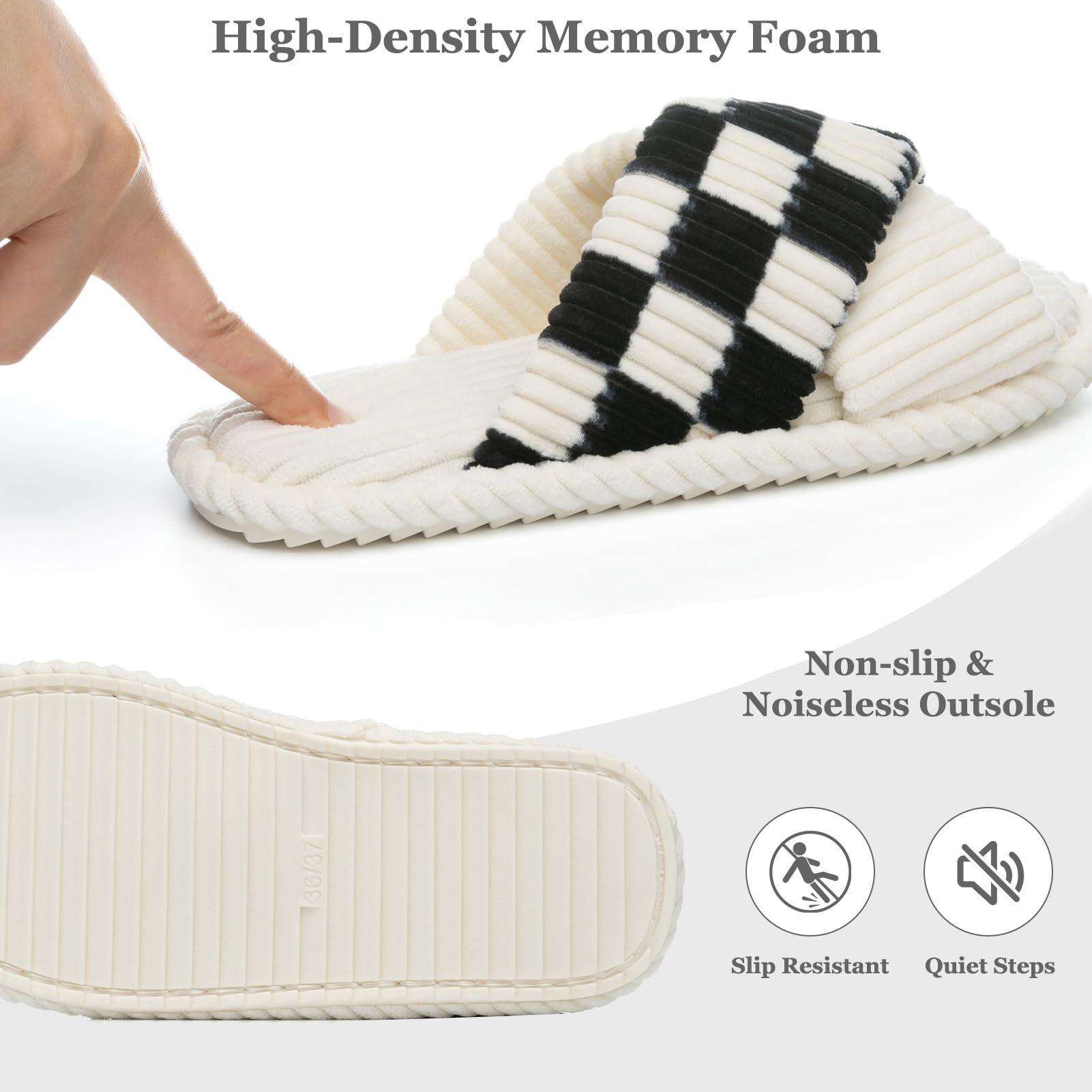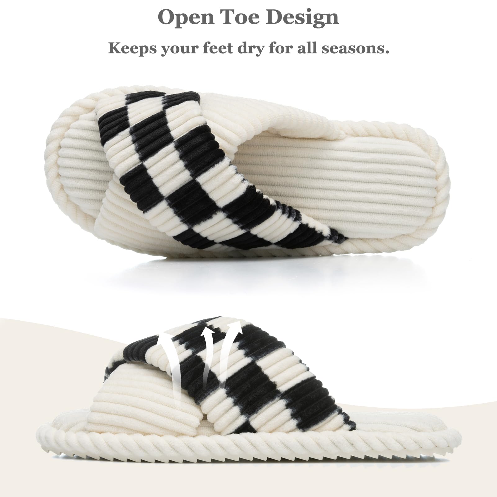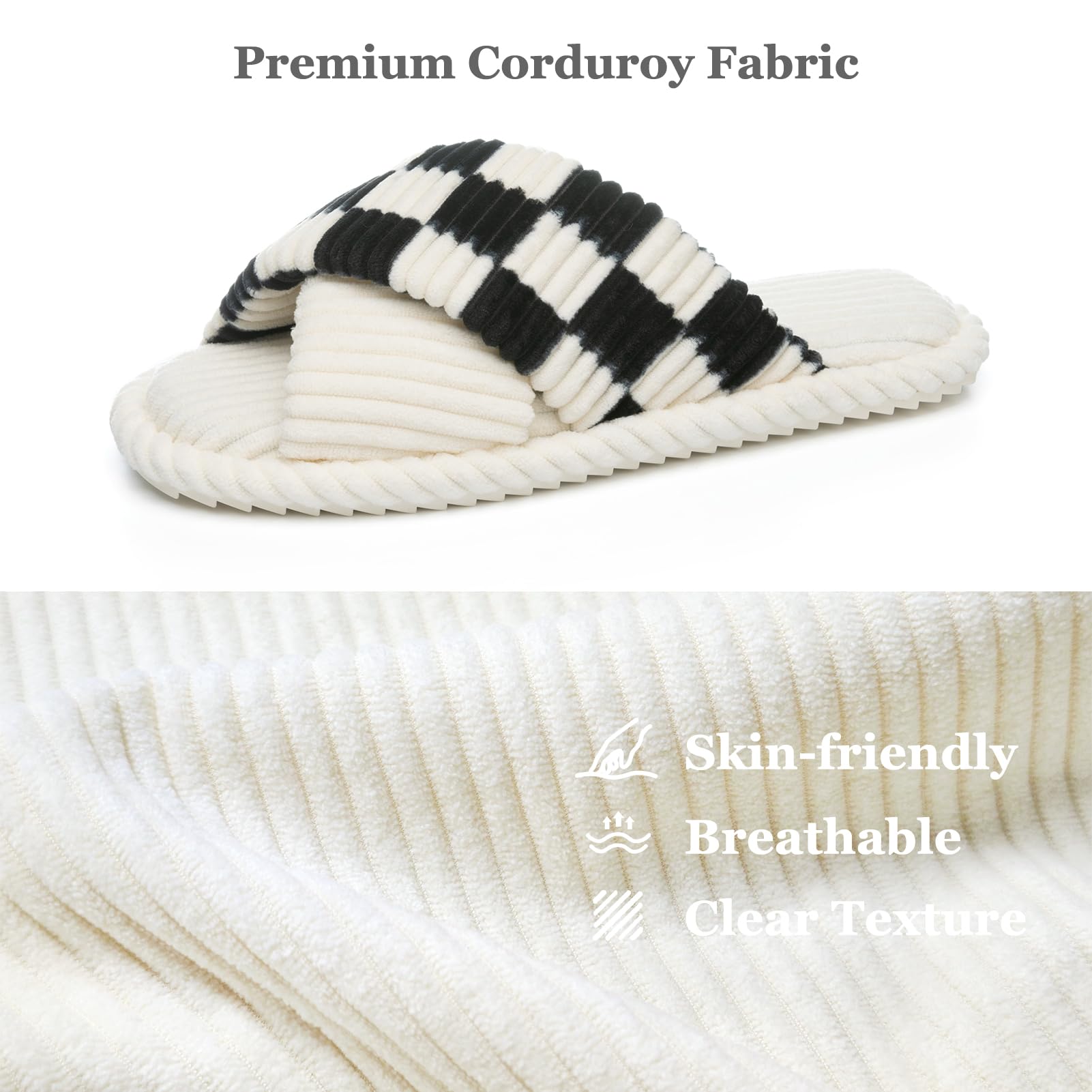 Simple but Textured: Designed with a stylish cross-band, these breathable open-toe slippers keep your feet comfortable. With the quality corduroy materials and fine workmanship, our house shoes have a minimalist look and excellent texture, revealing an elegant and premium feel,perfect for pairing with Winter sweater for women 2025.