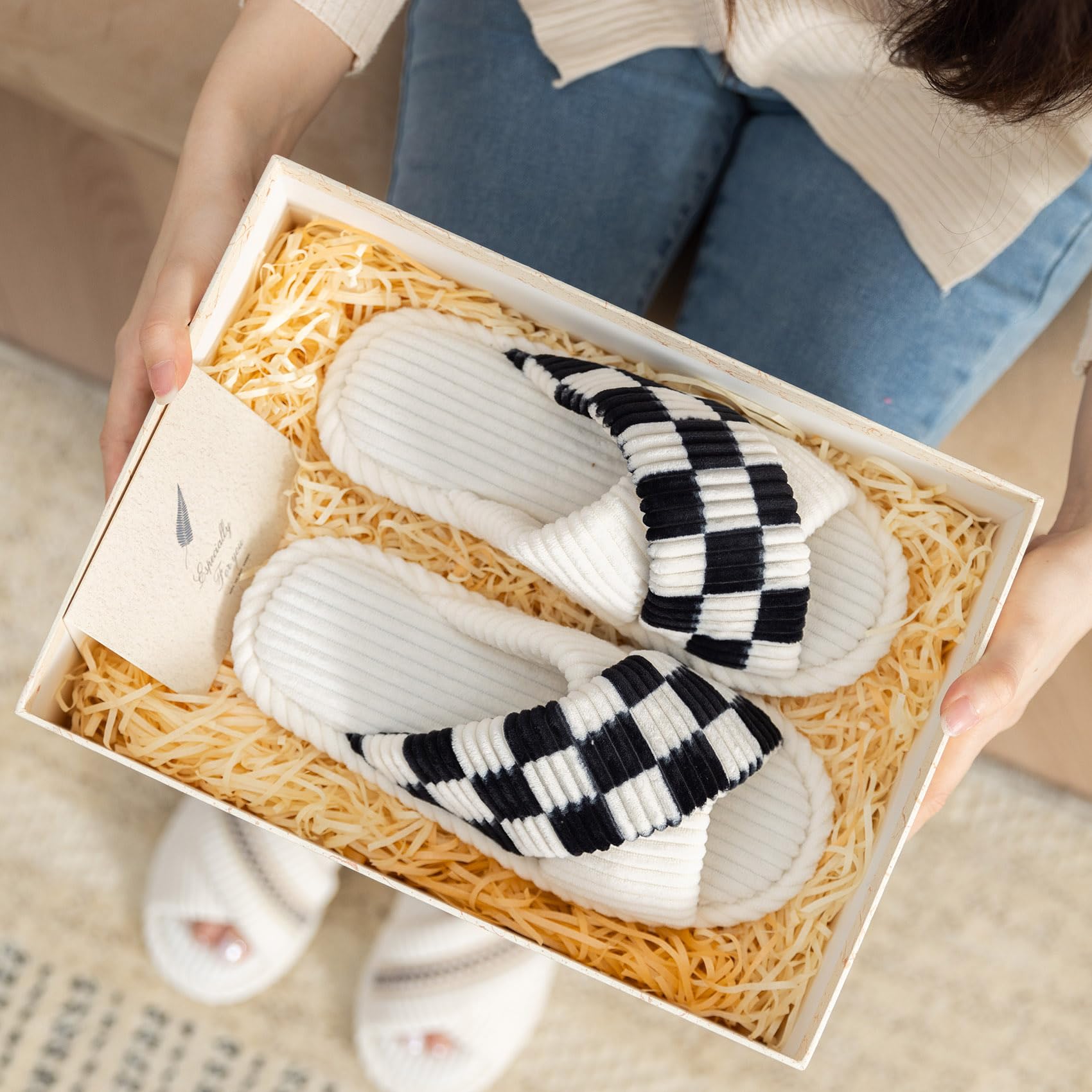 Apply to Various Occasion and Best Gift Choice:Whether as a sweet Christmas surprise, at a cozy pajamas party, a romantic winter date, or a festive family gathering—these cross-band slippers pair beautifully with warm sweaters, elegant winter dresses, jeans, thermal leggings, or even favorite holiday pajamas. It also can be wear in all seasons. Indoor and outdoor slippers for women have many advantages, are the best gift choice for bridesmaid, wife and friends.