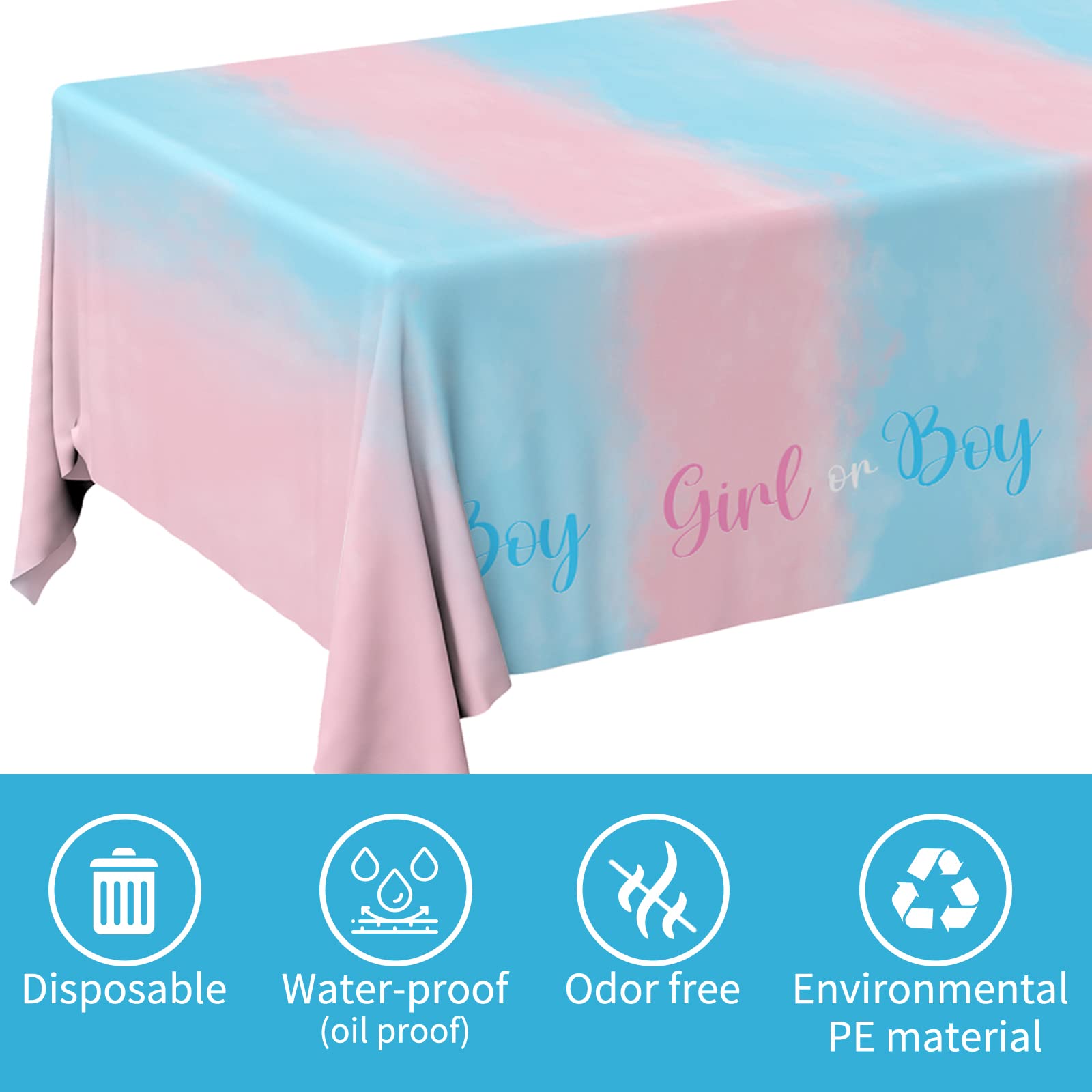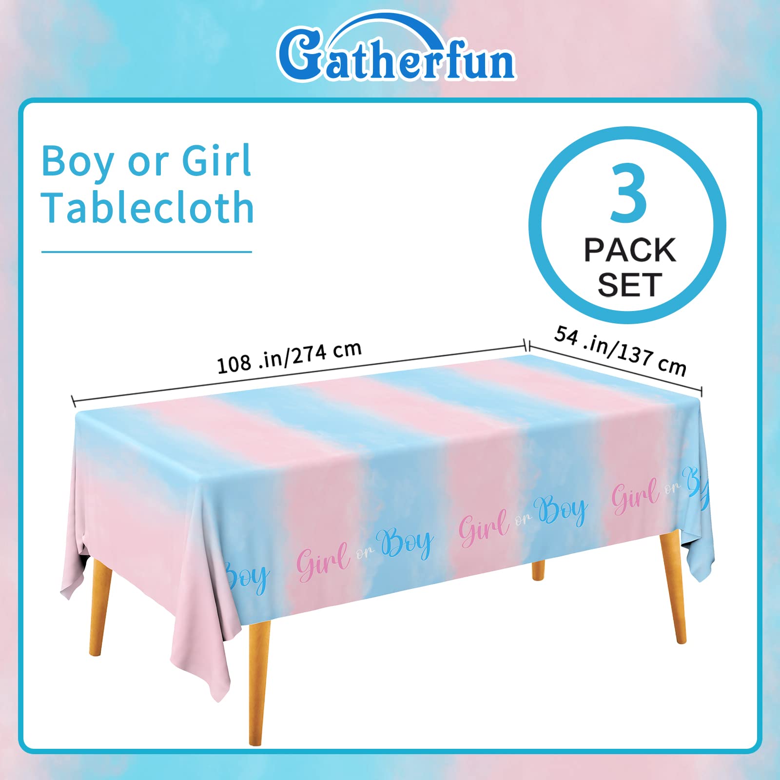 Package Included: This Gender Reveal tablecloth is pack of 3, suitable size with 54"x108".