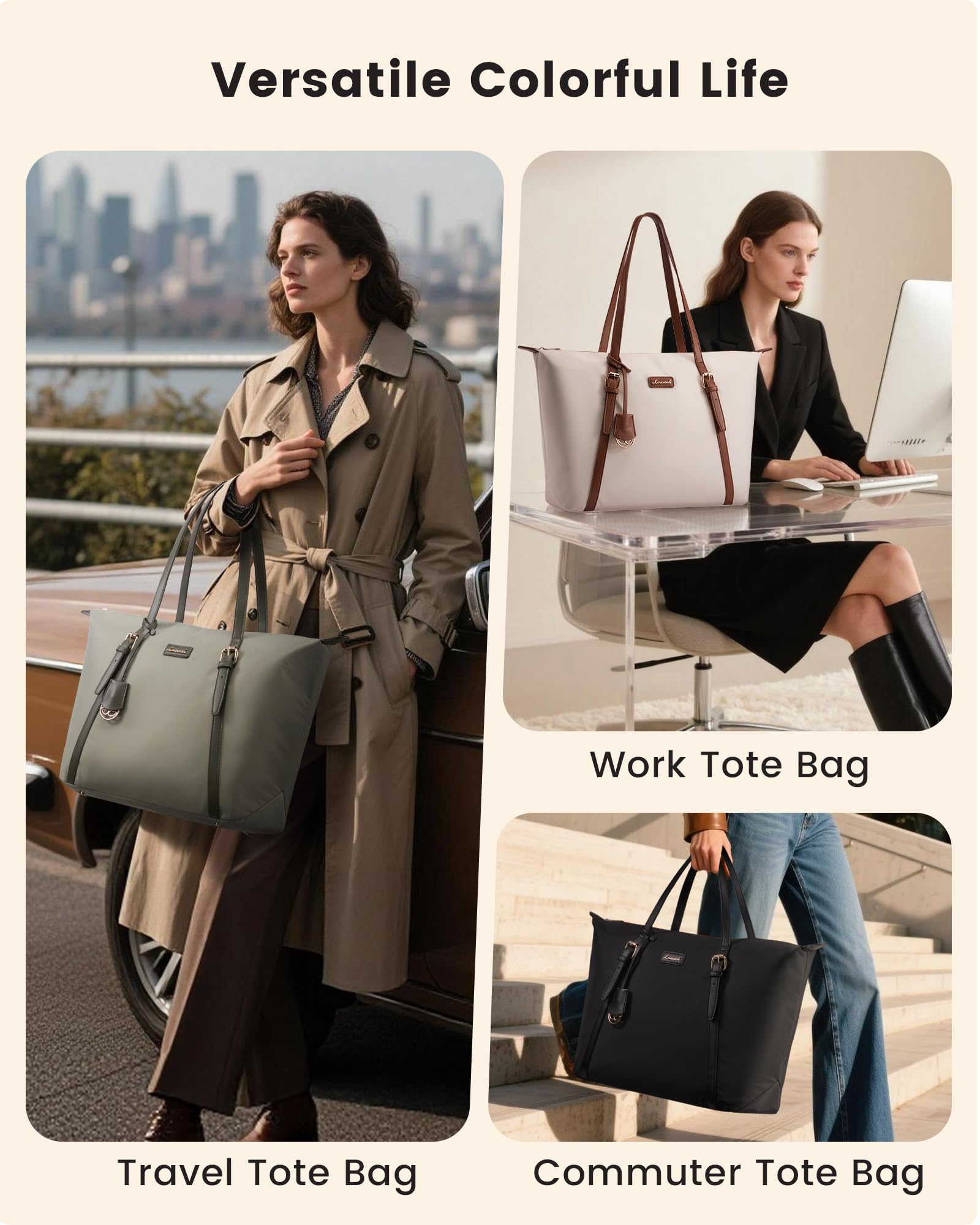 Exquisite Ornaments & Perfect Gift Choice: Minimalist design and relaxed yet polished vibe. It’s more than just a laptop bag for women; but also as a teacher bag, nurse bag, gym bag for women, diaper bag, computer bags for laptops for women, purses for women, everything tote bag, travel tote bags for women, or beach tote. it stands out as the gift for Valentine's Day, Birthdays, Mother's Day.