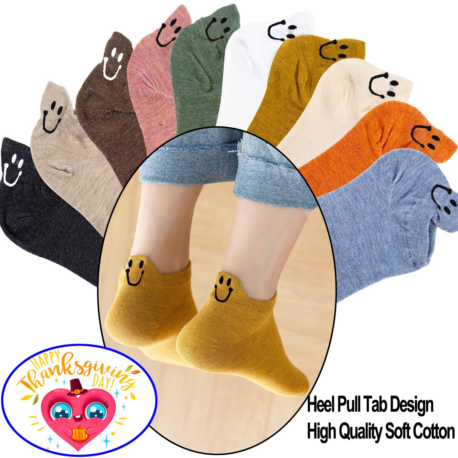 Funny socks are featuring lovely smile face on the top. Heel pull tab design prevents sock from slipping and is easy for you to put on and take off