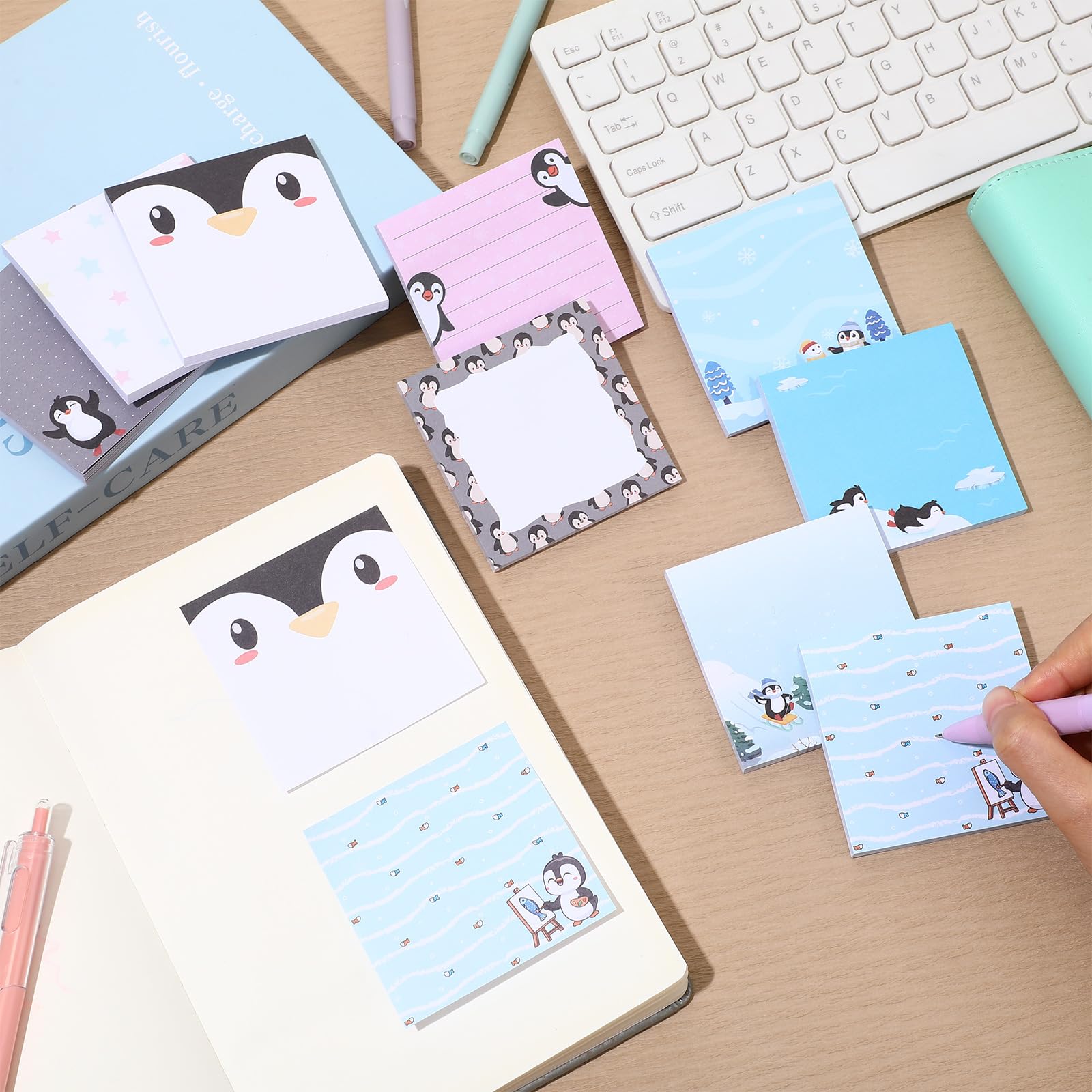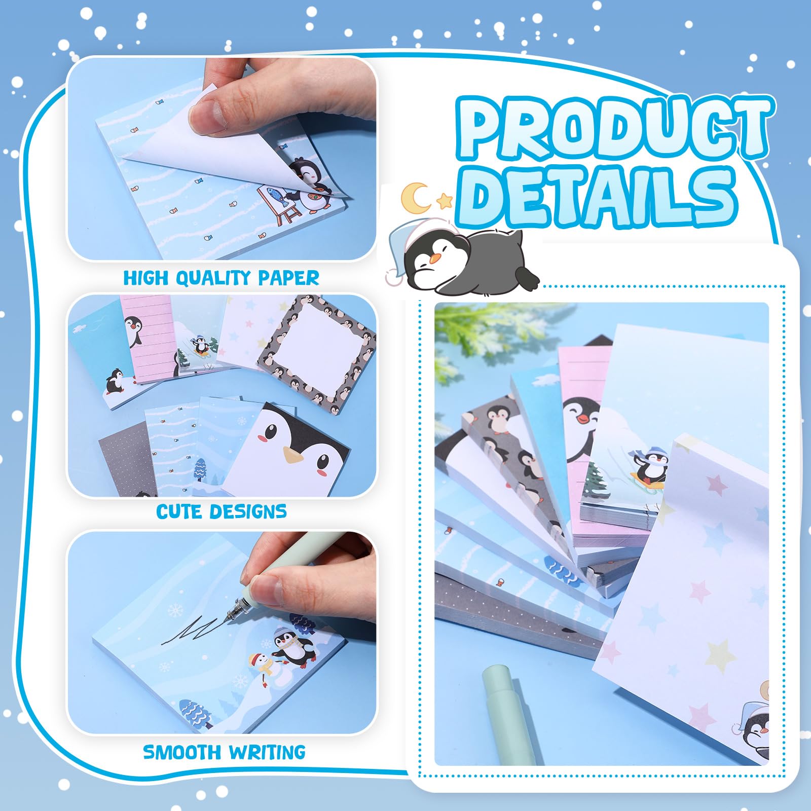 Extensive Usages: the penguin print sticky notes are suitable for writing memos, messages, notes, information, footnotes, to-do lists, study plans, etc., to paste on even surfaces, such as walls, computers, whiteboards and more, which can keep the notes sticky firmly, they can also be applied as bookmarks or reminders to use