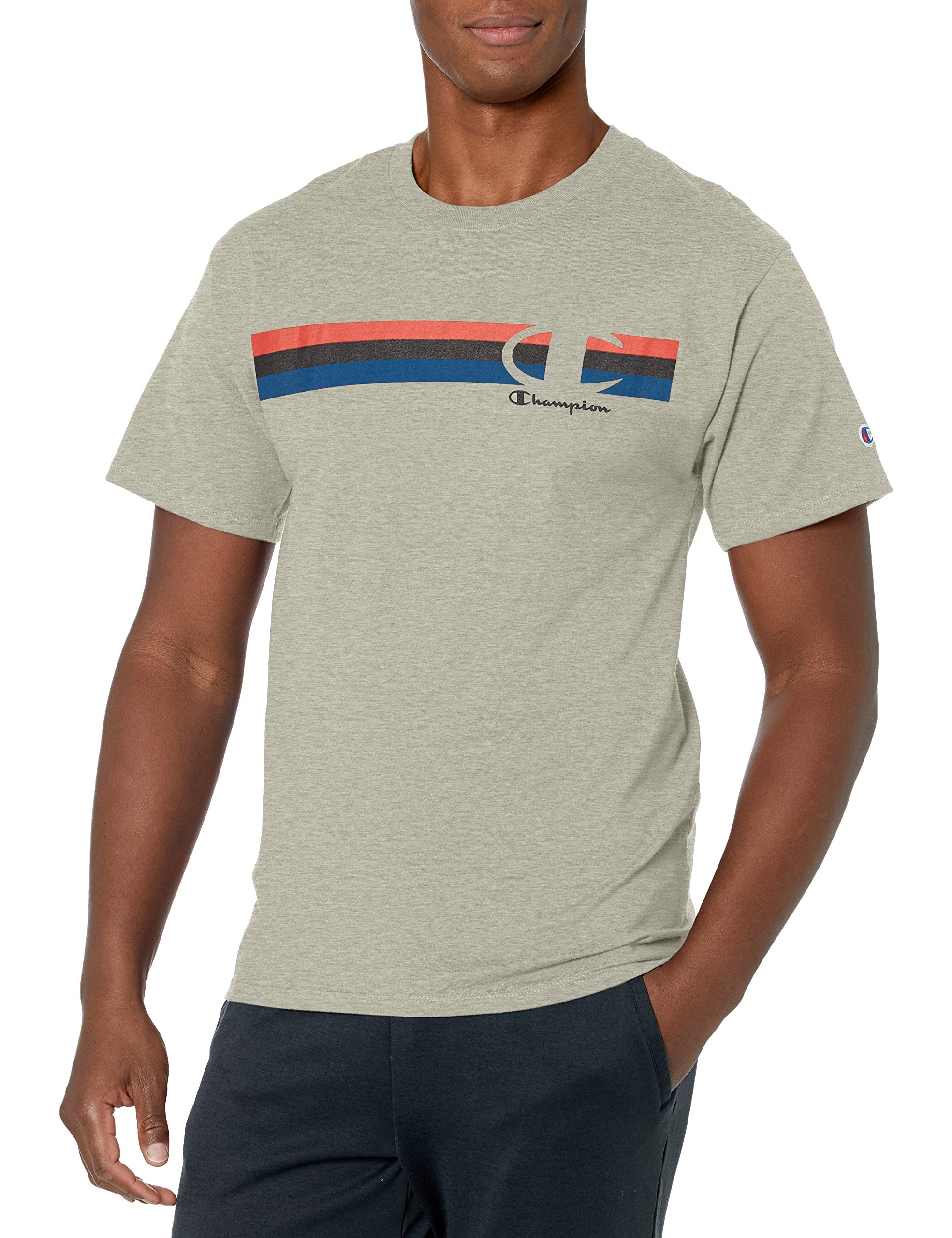 Description WELCOME TO CHAMPION LAND. A postcard-inspired graphic offers a vintage touch to this men's t-shirt. Made from a comfortable, supersoft cotton blend that feels great against the skin, this graphic tee is built to last with a ribbed collar and sturdy stitch work. Because good quality goes with basically anything, pair it with your best Champion jacket for the perfect streetwear look or with joggers for casual days. The iconic C logo hits at the sleeve, sending authentic brand vibes your way.