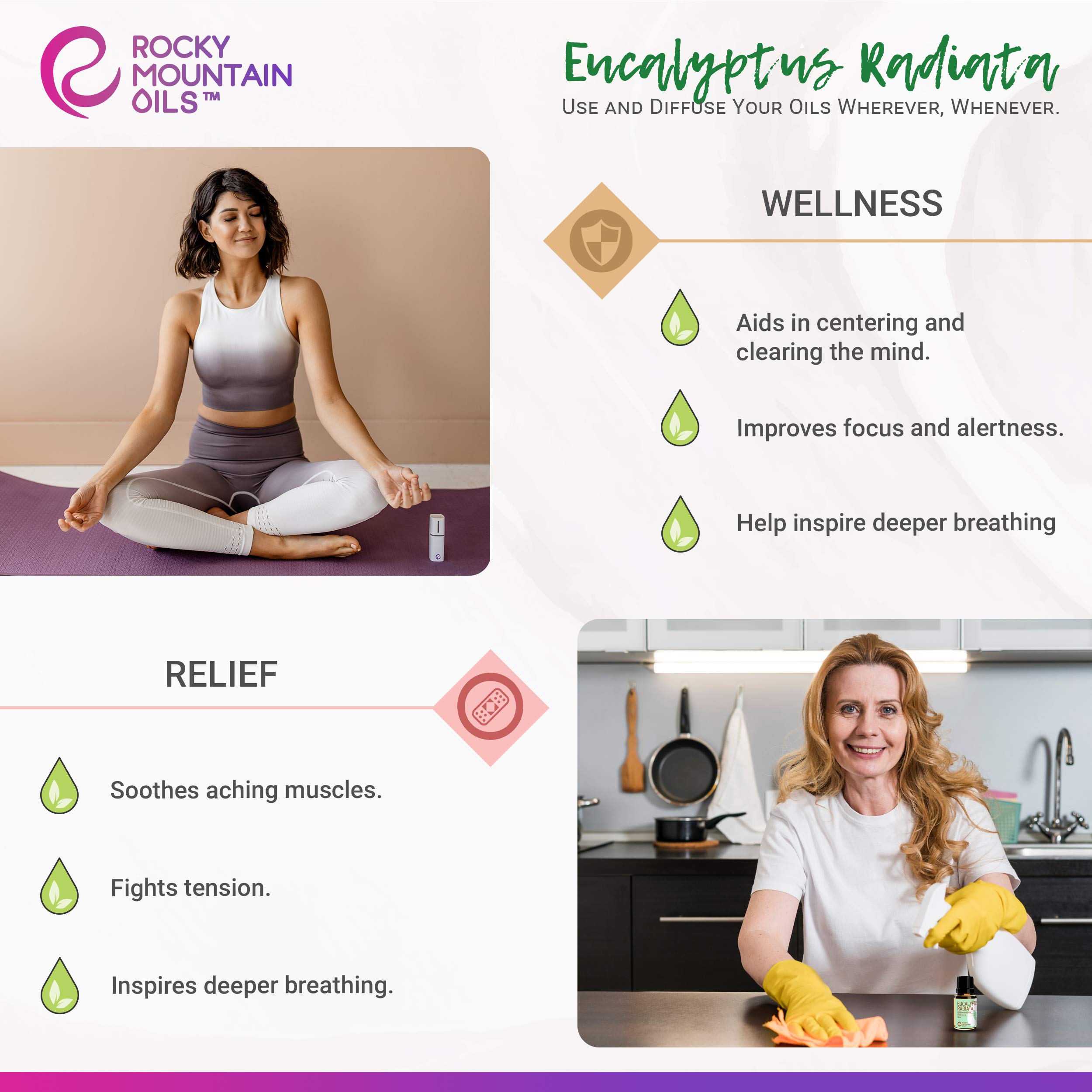 Diffuse: Eucalyptus Essential Oil offers powerful properties; Diffuse Eucalyptus Radiata and inhale the vapor to promote a healthy respiratory system and deep breathing; Add a few drops to any essential oil diffuser