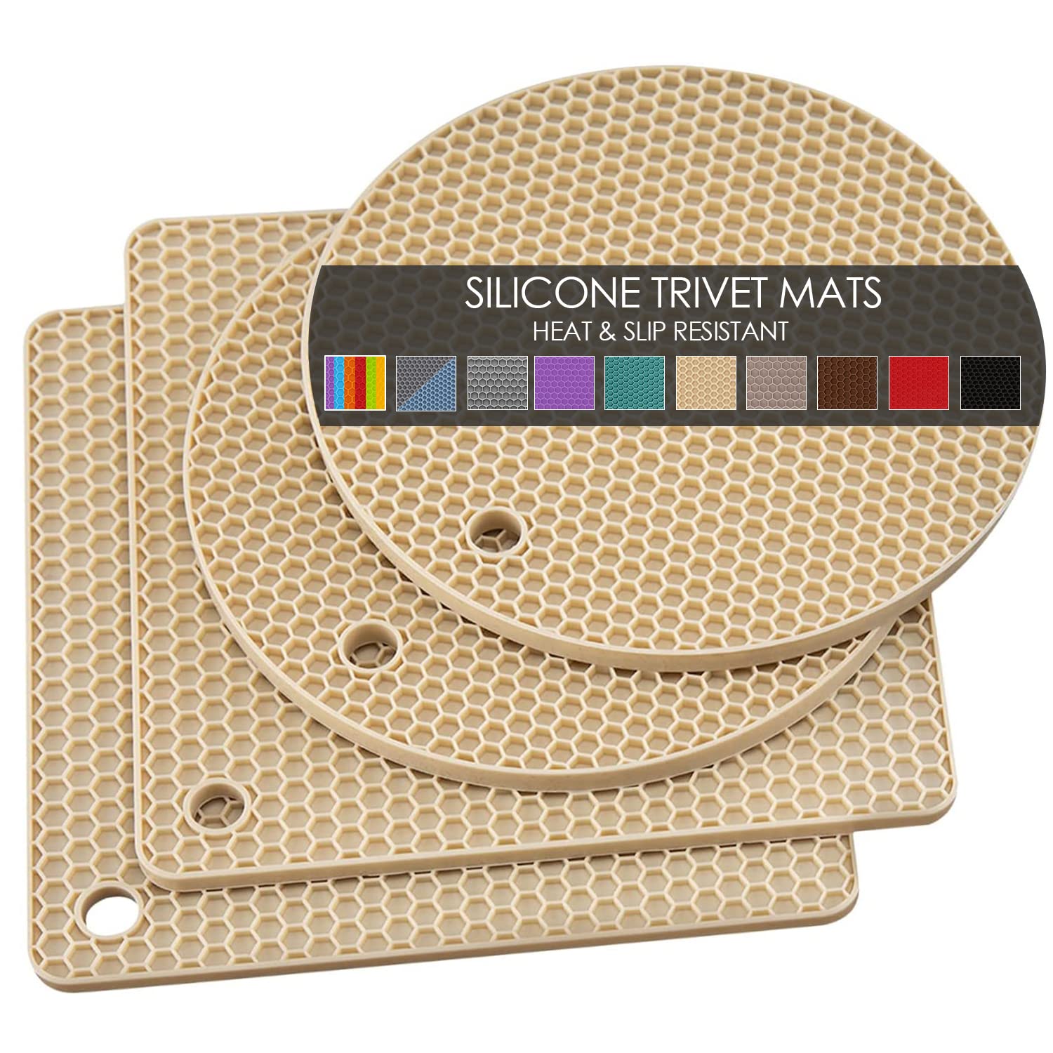 🥘Food-grade Silicone Material- silicone hot pads are soft, light weight, durable, are perfect for protecting table. The grey color is neutral enough to go with most of the other things in the kitchen.