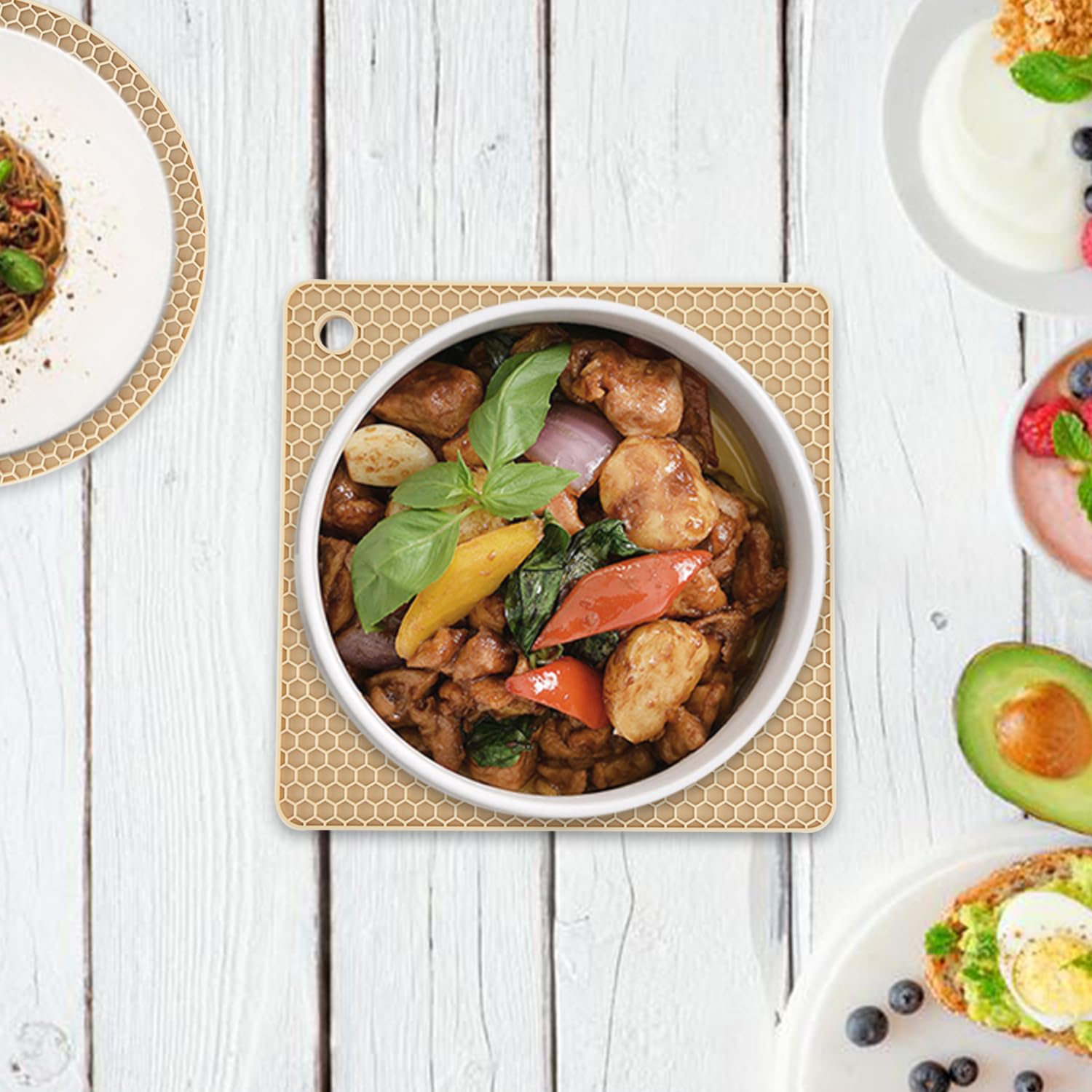 🥘Non-Slip & Hanging Storage- Because of the honeycomb pattern, they grip surfaces well, keeps items from sliding around. And there are holes in each mat for easy hanging and storage.