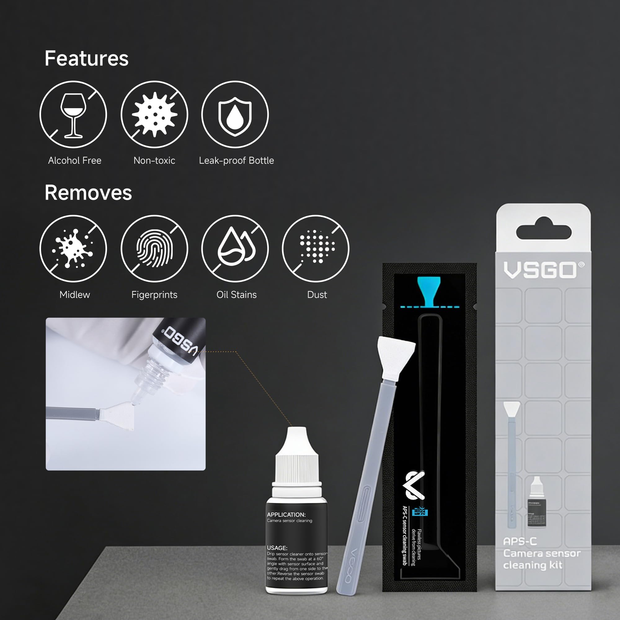 【Special Softness Design】: VSGO sensor cleaning swab matching the ergonomic, is comfortable to use,protect your optical coating.