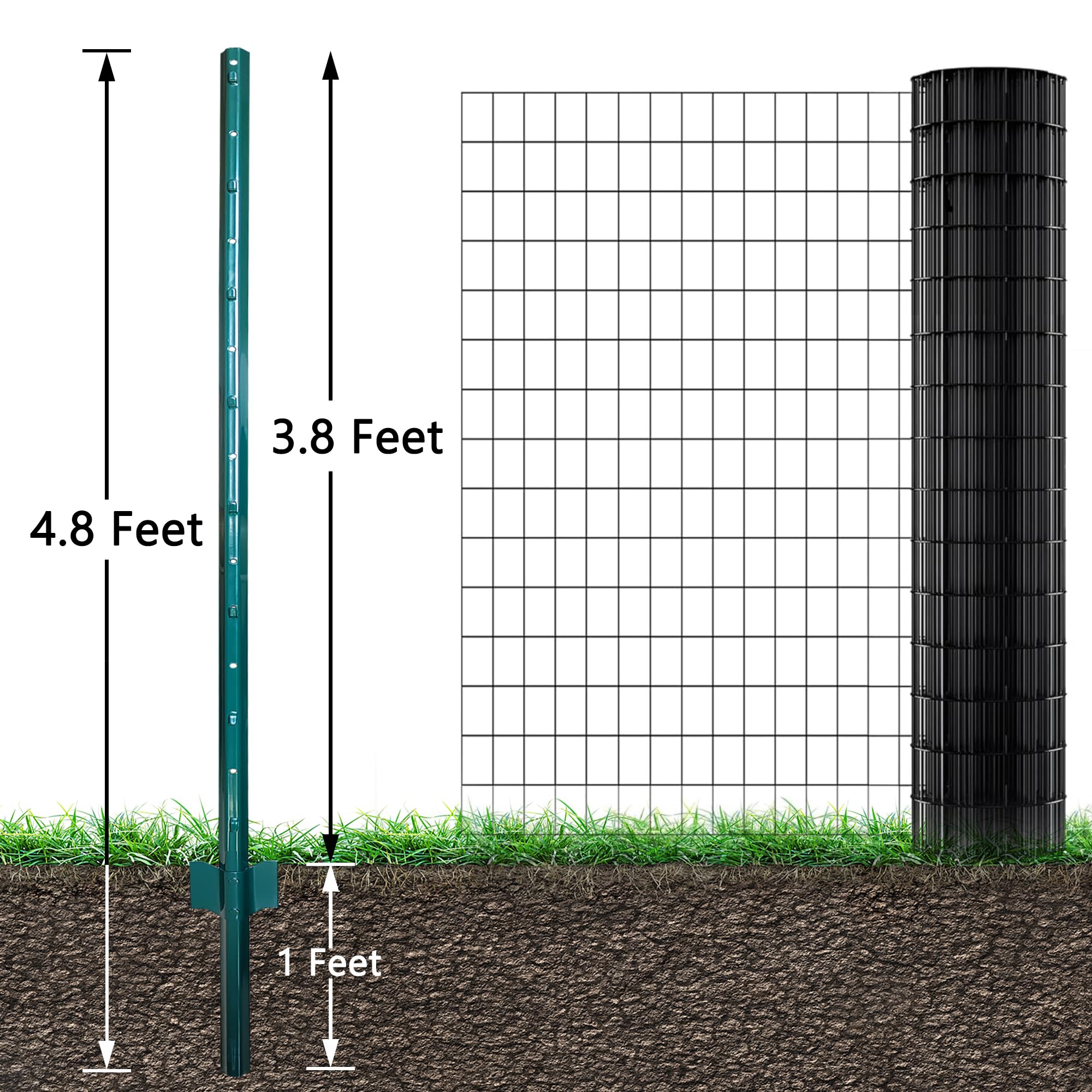 【Adjustable tags for easy connection】Our metal fence post features well-crafted welding and evenly spaced mesh holes.The adjustable tags allow you to adjust the tension of the fence.Whether you're installing a garden fence, anchoring a corner post, or marking a driveway, our U-shaped metal fence post design makes installation a breeze. Simply use a hammer or post driver to drive the stakes into the ground. No digging required!