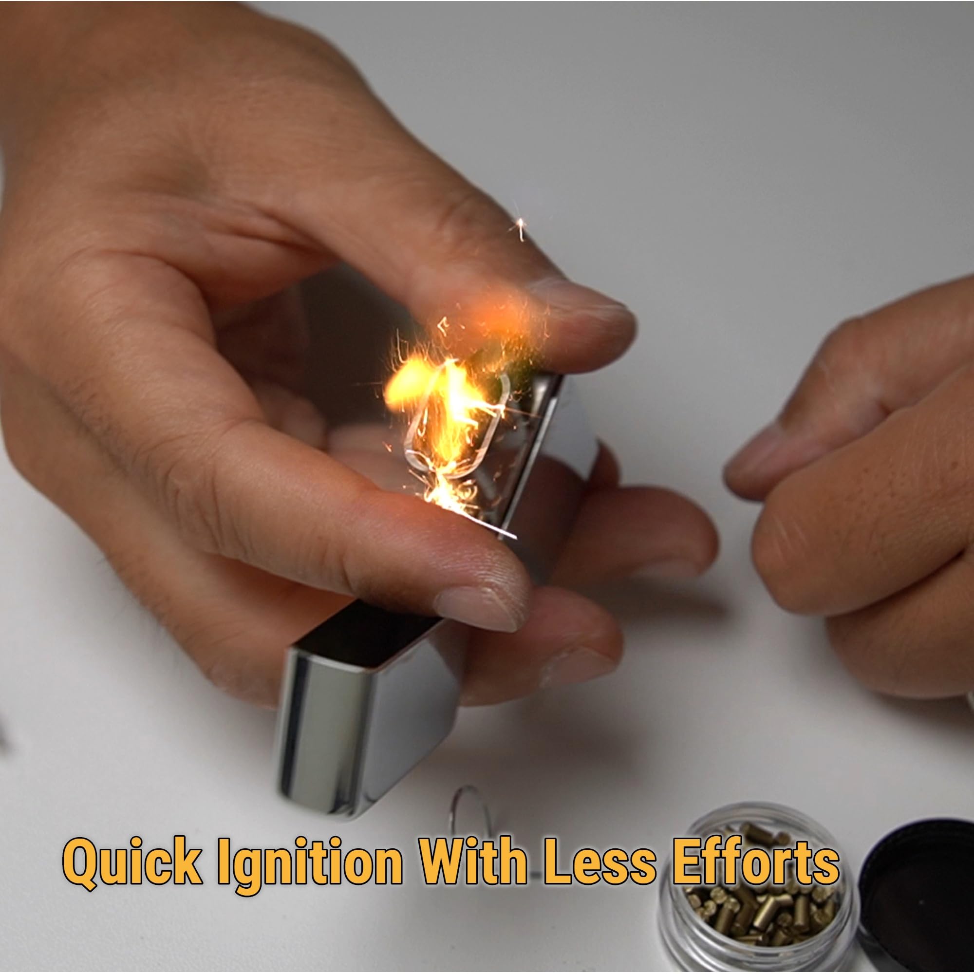 【Easy-Pour Bottle for Hassle-Free Refills】 Experience the ultimate convenience of our spill-proof bottle packing. The 100-count of replacement flints comes in a sturdy, resealable bottle with an easy-pour spout, making replacement quick, clean, and simple. It's the mess-free solution for storing and handling small flint stones.