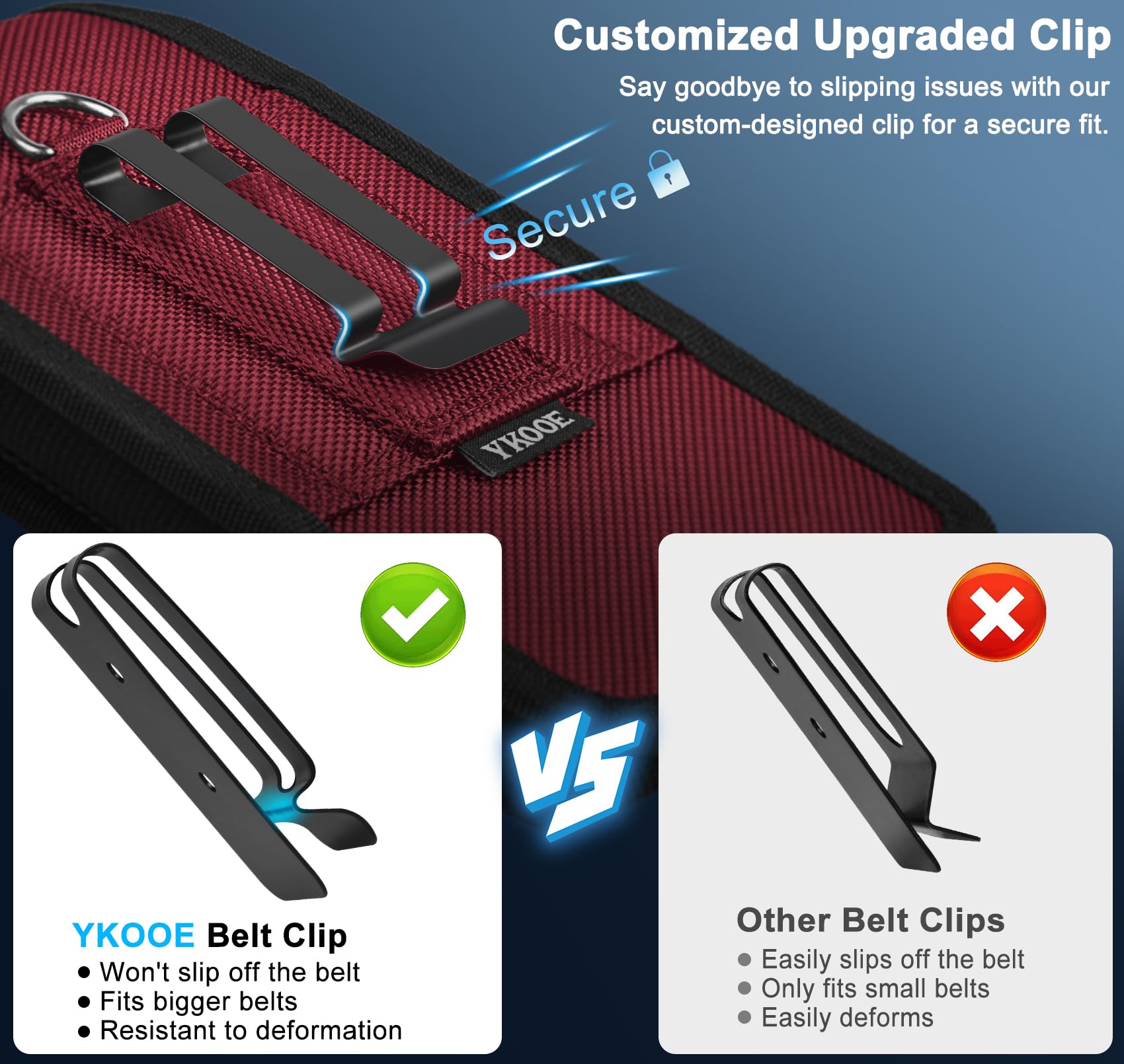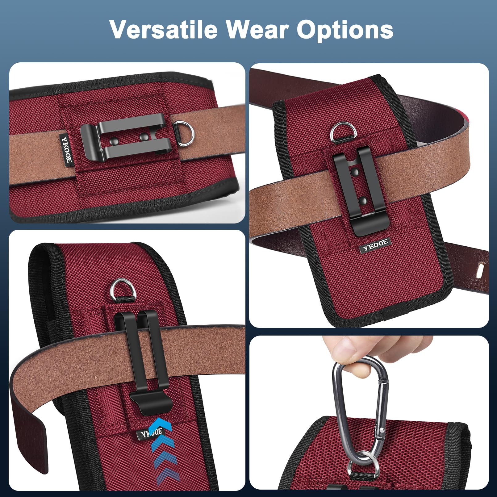 Multiple Carrying Options: Equipped with a non-slip belt clip, dual belt loops (horizontal and vertical), and a carabiner hanging ring for versatile attachment options, making it easy to carry in any situation