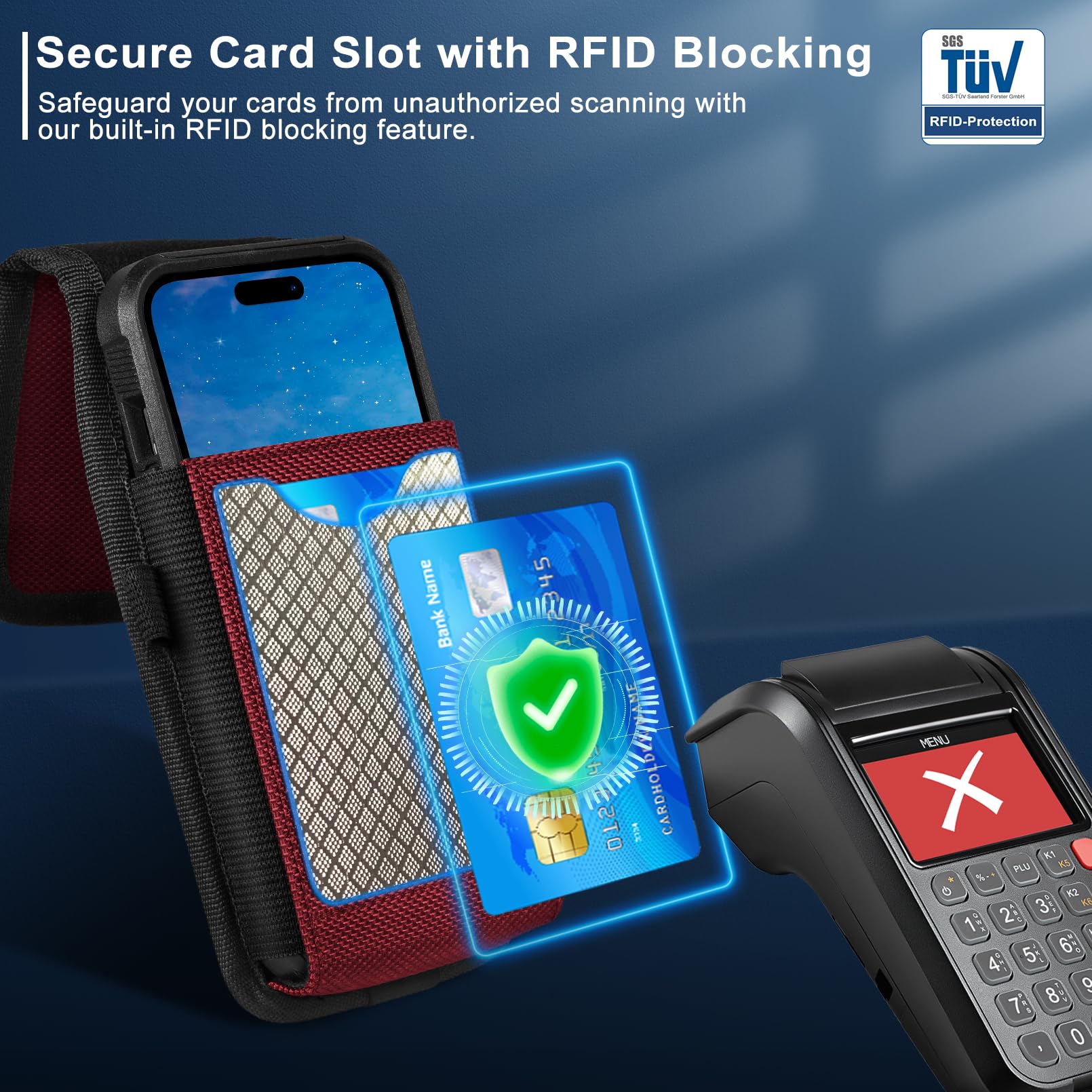 Secure Card Slot: Holds 1-2 cards in the external slot, equipped with RFID technology to safeguard your cards against unauthorized scanning and ensuring your personal information stays secure