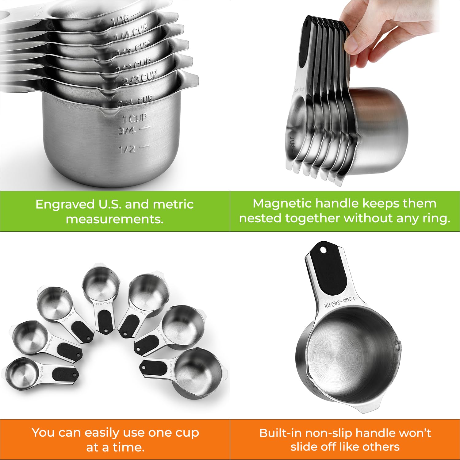 Complete Set Of Cups With All The Common Sizes You Need - You'll be able to make almost anything with the included sizes - 1/8 cup, 1/4 cup, 1/3 cup, 1/2 cup, 2/3 cup, 3/4 cup, and 1 cup.