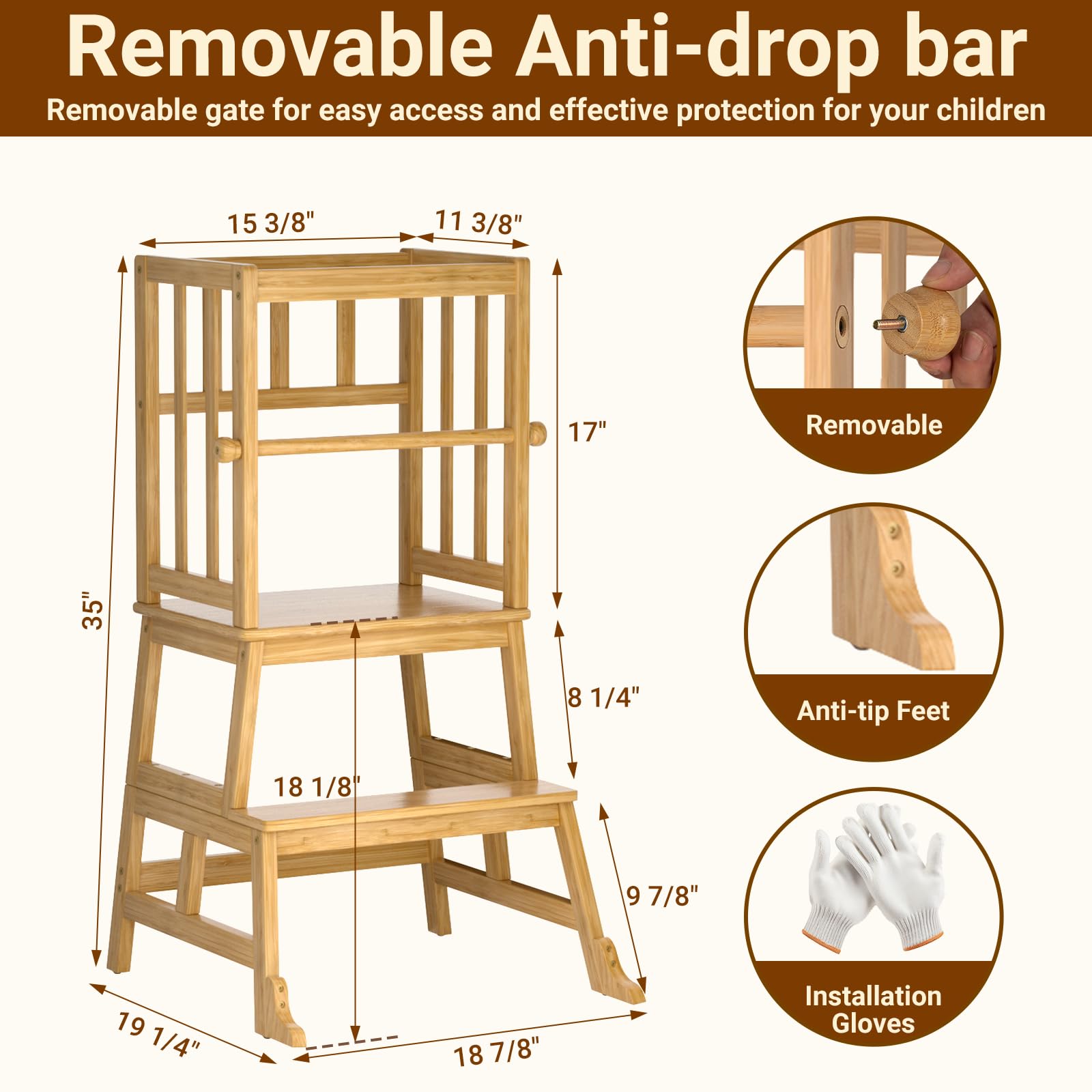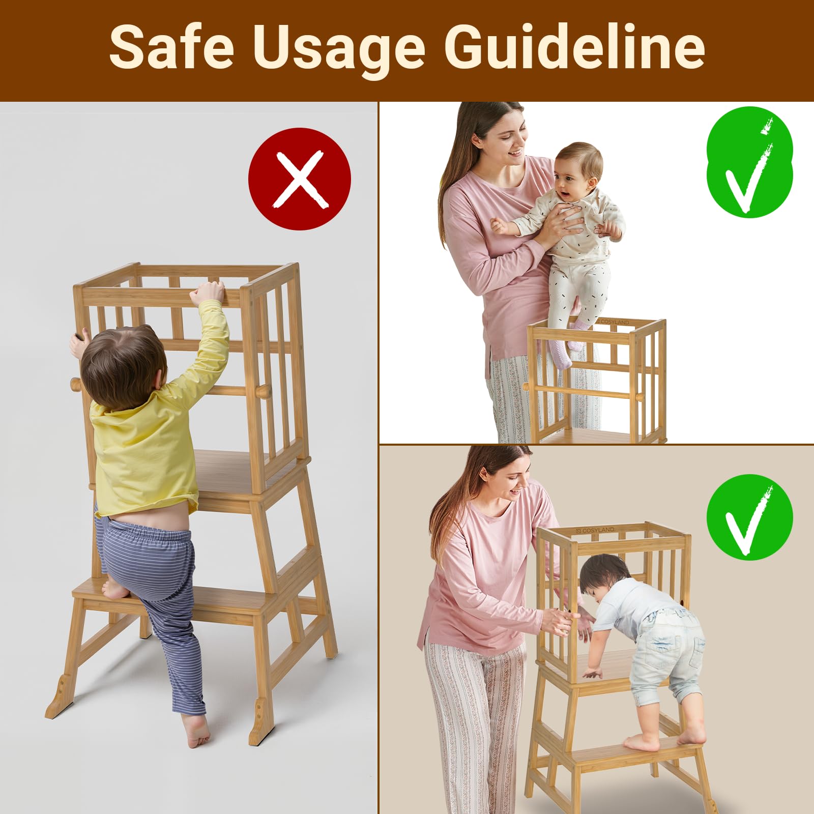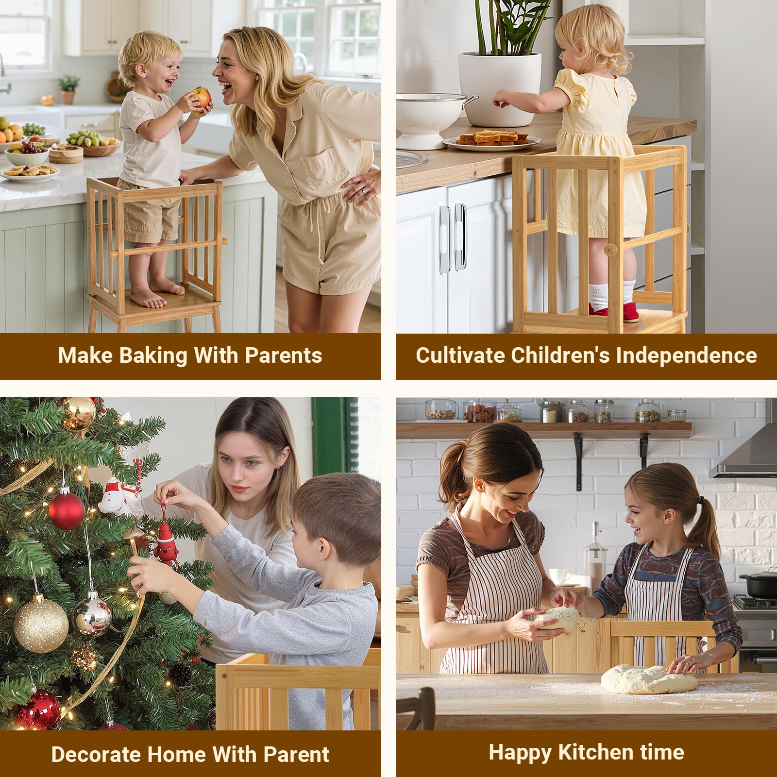 Made to Last: This sturdy tower stool for learning is made from solid natural material with a child-safe, meticulous finish that prevents scratches and scuff marks. Safely supports 150 lbs for toddlers 18 months to 3 years old