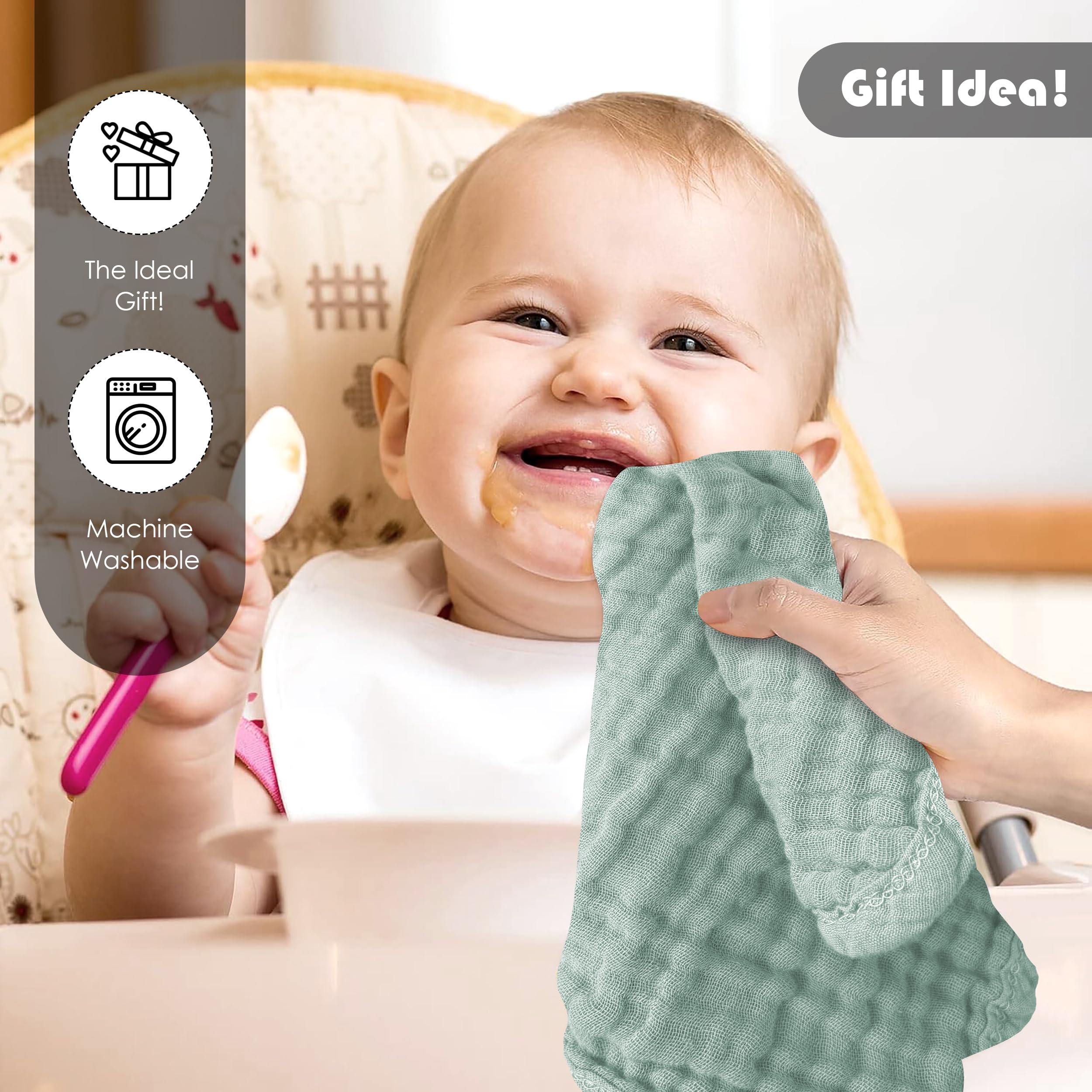 Versatile and Practical: Our washcloths go beyond bath time and can be used as burp cloths, nursing covers, face towels, and more. Their convenient size makes them ideal for on-the-go use, providing practicality and versatility for all your baby care needs. Elevate your baby care routine with our versatile and luxurious baby muslin washcloths.