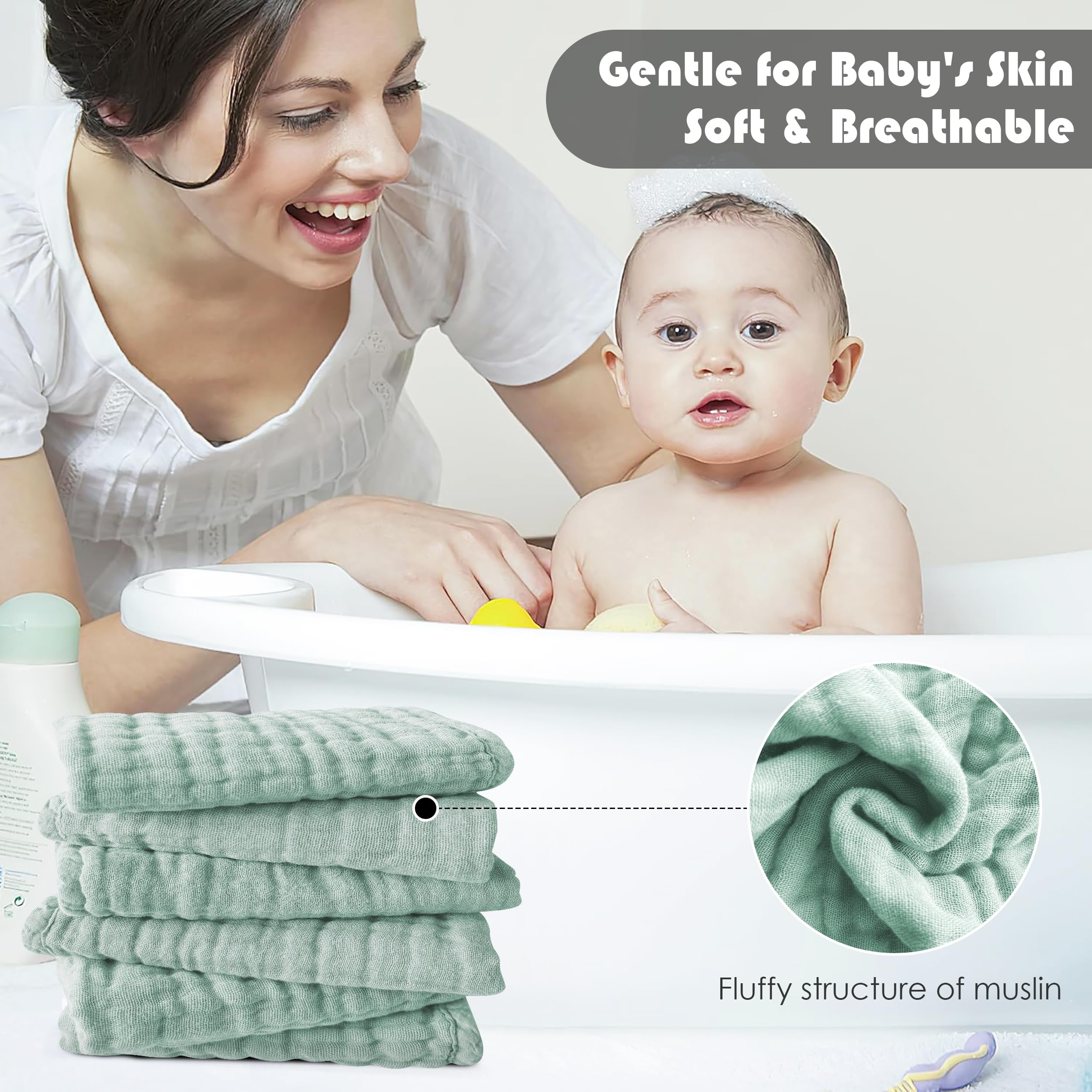 Ultra-Soft and Gentle: Our baby muslin washcloths are made from 100% cotton and feature a super soft touch for your baby's delicate skin. They are perfect for bath time and provide ultimate comfort and care.