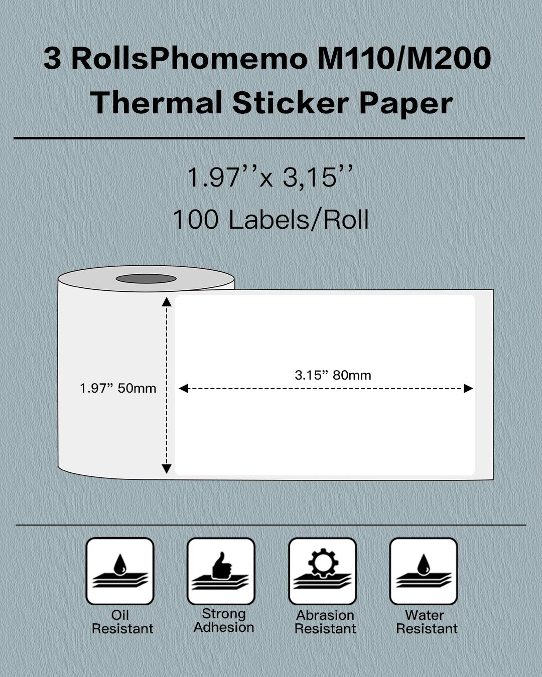 √ Thermal Label Features- Phomemo self-adhesive Multi-Purpose labels are water resistant, oil resistant, abrasion resistant, strong adhesion