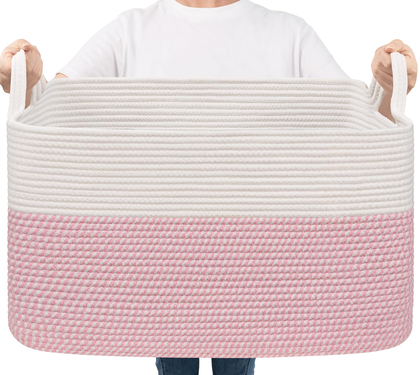 Large Capacity: 21.6"L x 14.9"W x 11.8"H, this large rectangle basket with 75L capacity is perfect for storing throw blankets, pillow, cushions, clothes, towels and stuffed animals