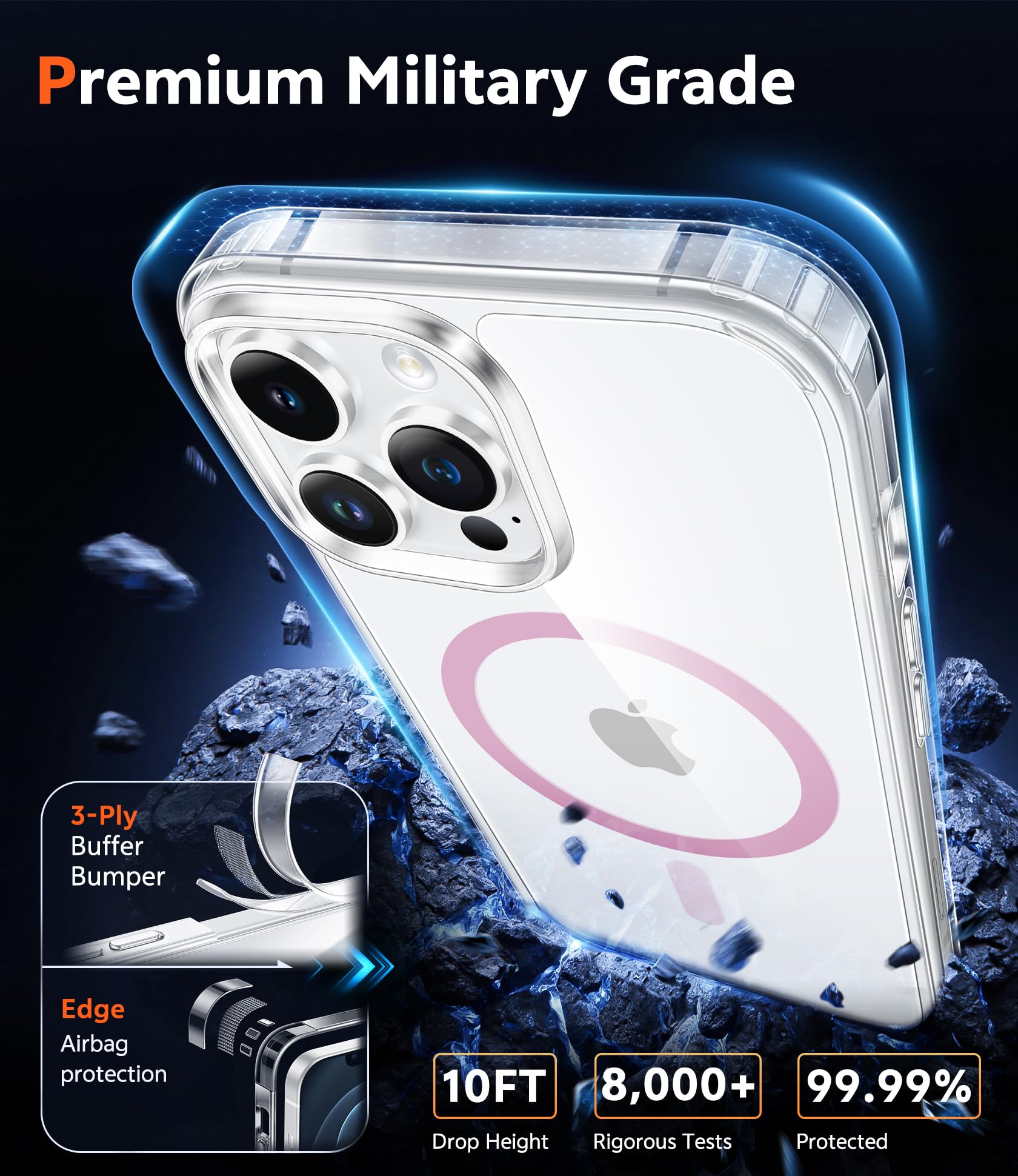 10FT Military Grade Protection: This iPhone 12 pro max phone case backplane is made with rigid polycarbonate and flexible shockproof TPU bumpers around the edge and features 4 built-in corner Airbags to absorb impact