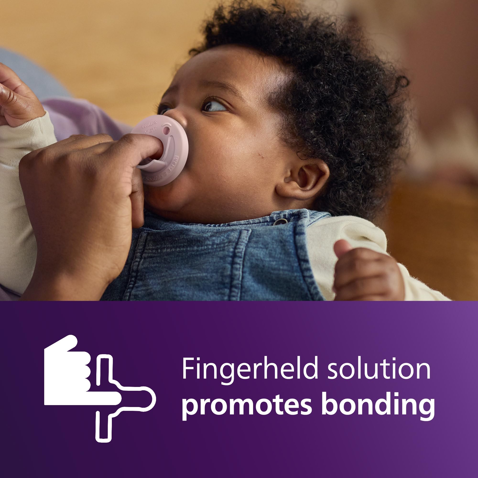Philips Avent Soothie one-piece pacifiers are specially sized and shaped for babies 3-18 months old and adhere to the American Academy of Pediatrics guidelines¹. Soothies are made of hospital-grade, BPA-free and latex-free silicone for comfort and durability. A collapsible, symmetrical-shaped nipple designed to support healthy oral development and satisfy baby’s natural suckling need. The unique finger-held design lets you place your finger in the nipple so parents and the village can bond and connect with the baby, making it easier to share the care. Soothie’s one-piece design ensures bacteria have nowhere to hide. This infant pacifier is made for hospital-strength sterilization − it's extra durable and safe. Clean Philips Avent pacifier with your sterilizer or submerge it in boiling water. For hygiene reasons, replace pacifiers after 4 weeks of use. Philips Avent Soothie is distributed in hospitals nationwide. 92% of moms trust Soothie for their newborns.² The set includes 2 lilac and 2 pink pacifiers. ¹ American Academy of Pediatrics recommends to “purchase pacifiers that cannot possibly come apart. Those molded of one solid piece of plastic are particularly safe”. (Caring for Your Baby and Young Child: Birth to Age 5, 7th ed. 2019, By American Academy of Pediatrics, Tanya Remer Altmann and David L. Hill, New York: Bantam Books.) ² of moms aware of Soothie