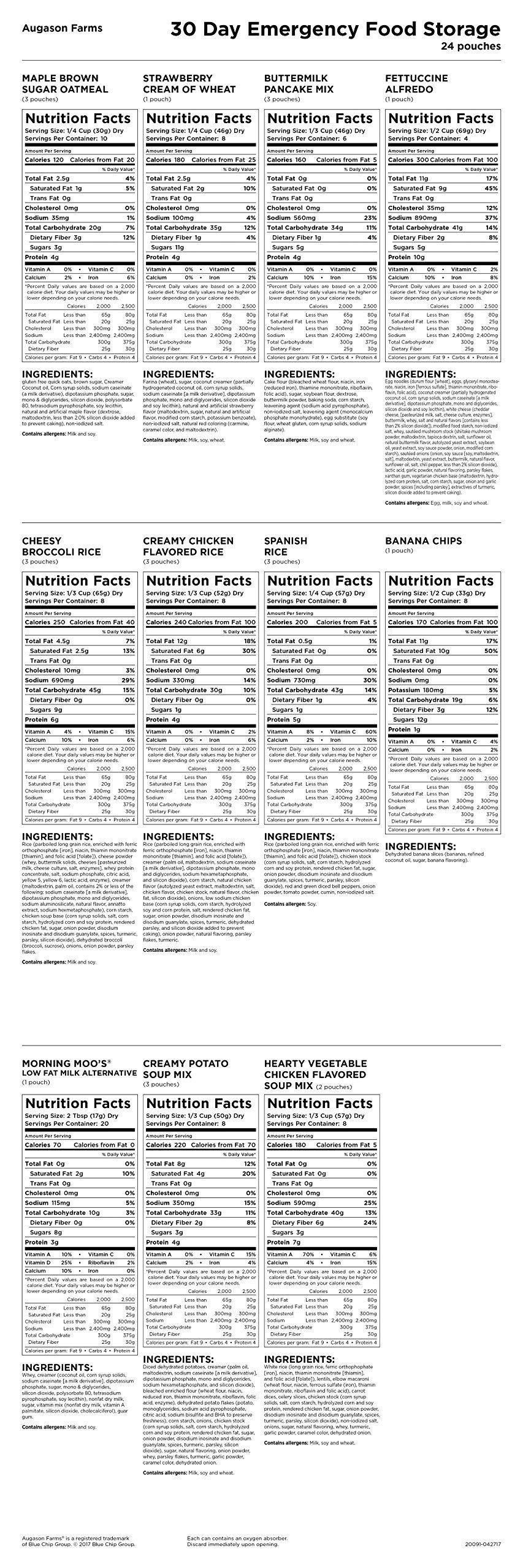 QUICK PREPARED FOODS - Augason Farms 1-Person 30 Day Kit includes pancake mix, strawberry creamy wheat, oatmeal, fettuccine alfredo, creamy rice & vegetables, cheesy broccoli rice, Spanish rice, creamy potato soup, vegetable stew, & whey milk drink