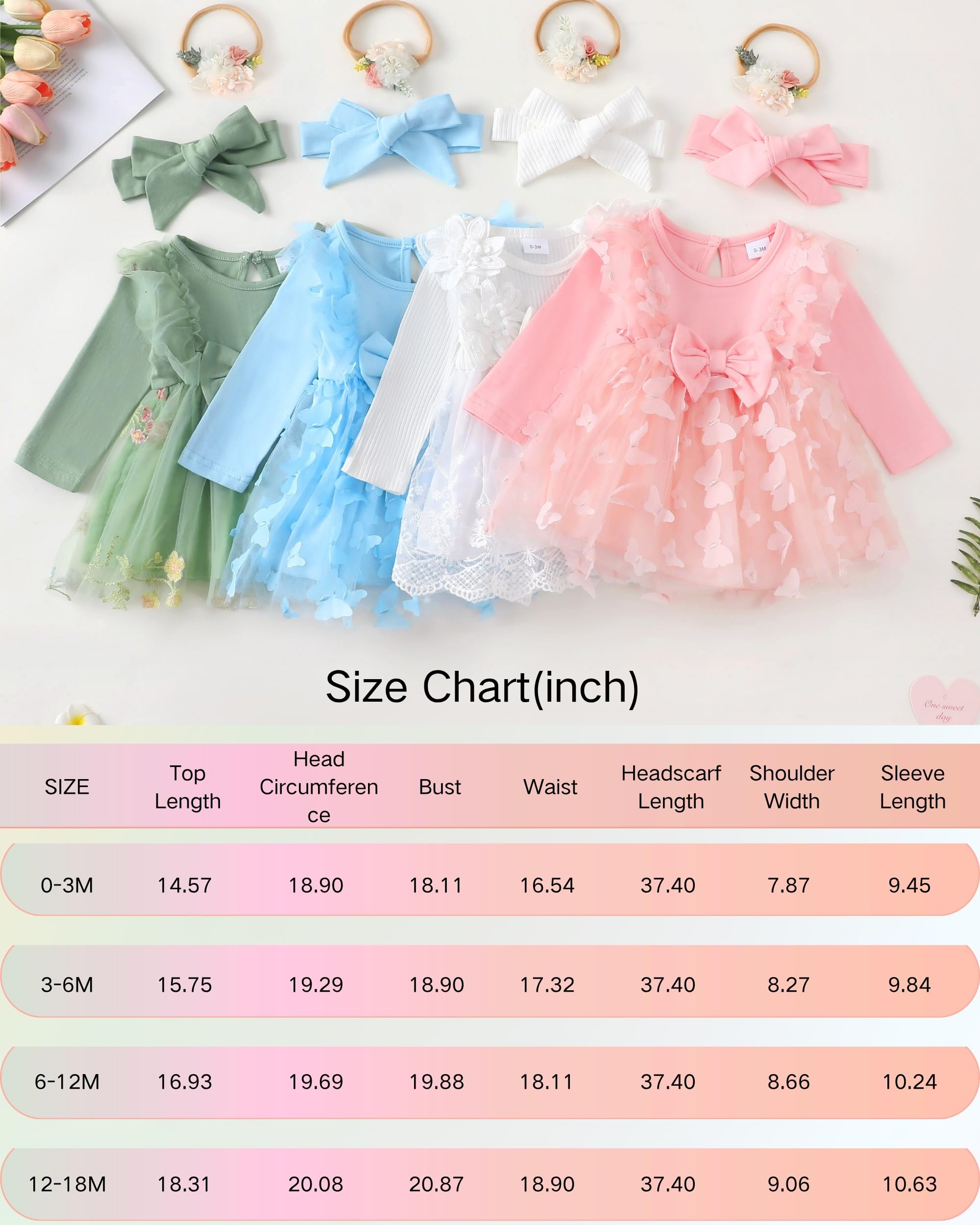 【Material: Premium Tulle + Cotton】This long sleeve baby princess dress is crafted from soft tulle and cotton, ensuring a comfortable and lightweight feel that’s gentle on delicate skin. The soft inner lining provides all-day comfort, while the layered tulle skirt adds an ethereal, fairy-like charm. The matching flower headband completes the look, making it a perfect choice for your little princess.