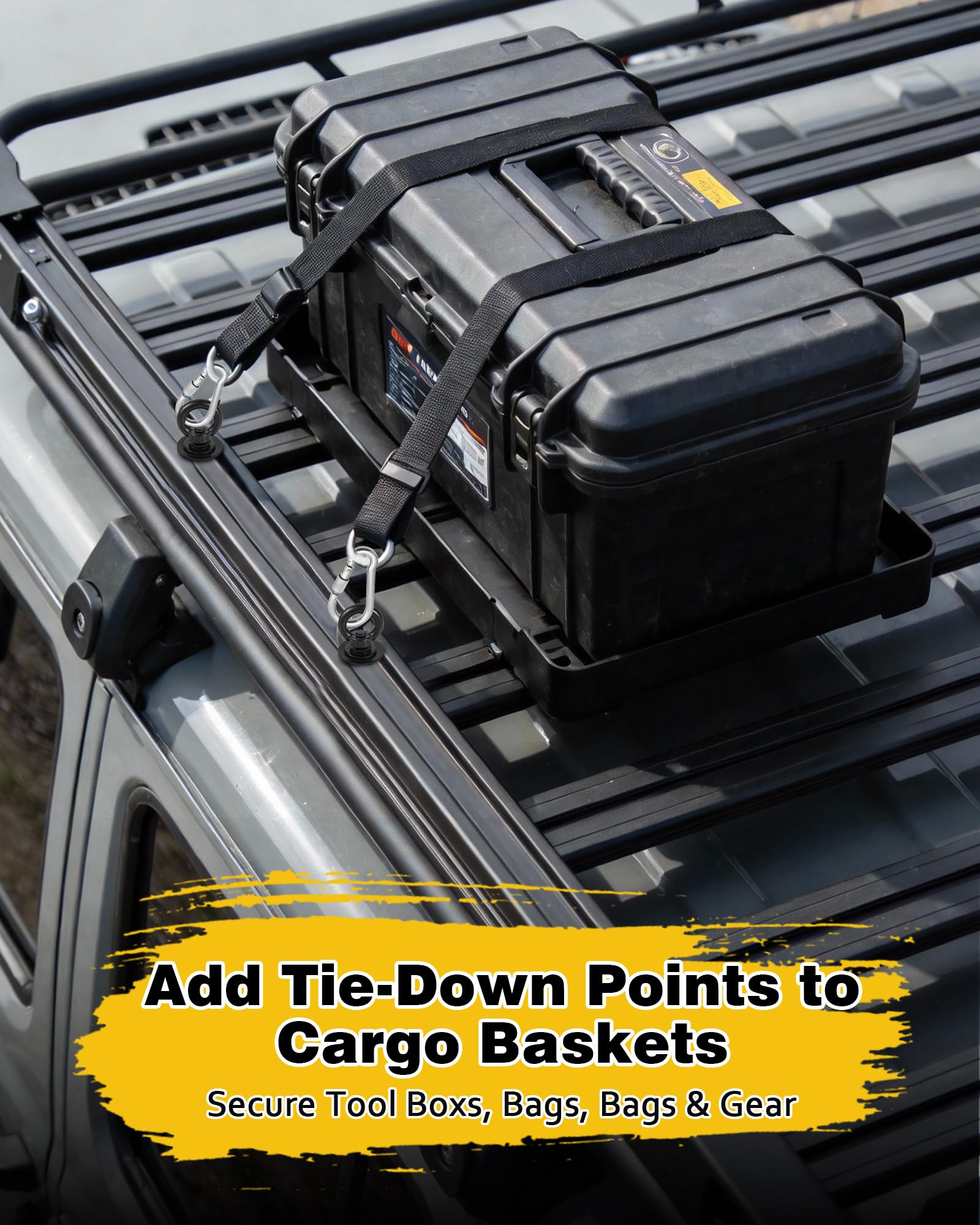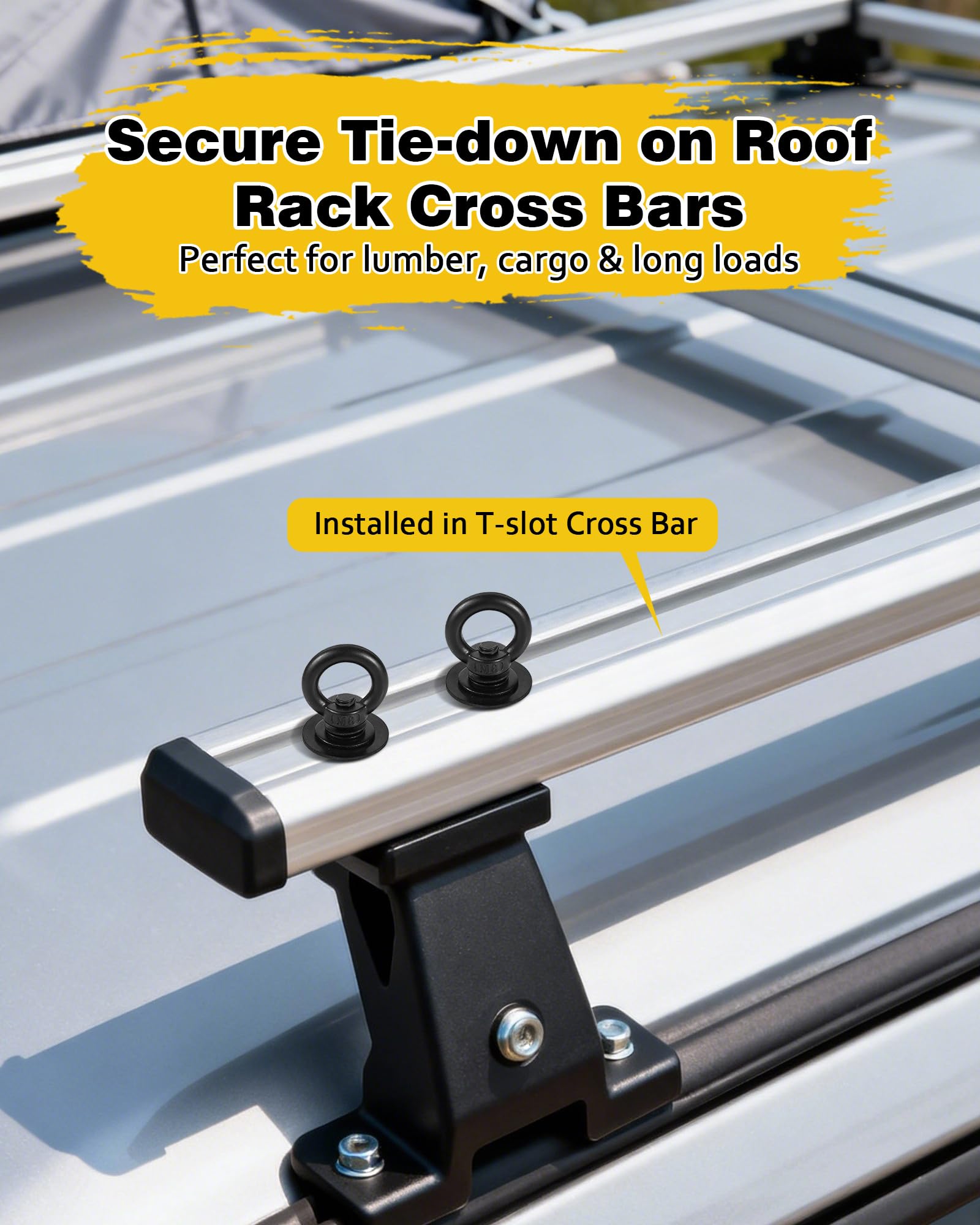Usage: Utility t bolt eye nut kit to make tie down points on roof rack, truck bed, kayak tracks, designed for holding bungees cord, cargo net, tie down straps, roof rack straps, cam strap for kayak, and more, ideal for lifting most equipment
