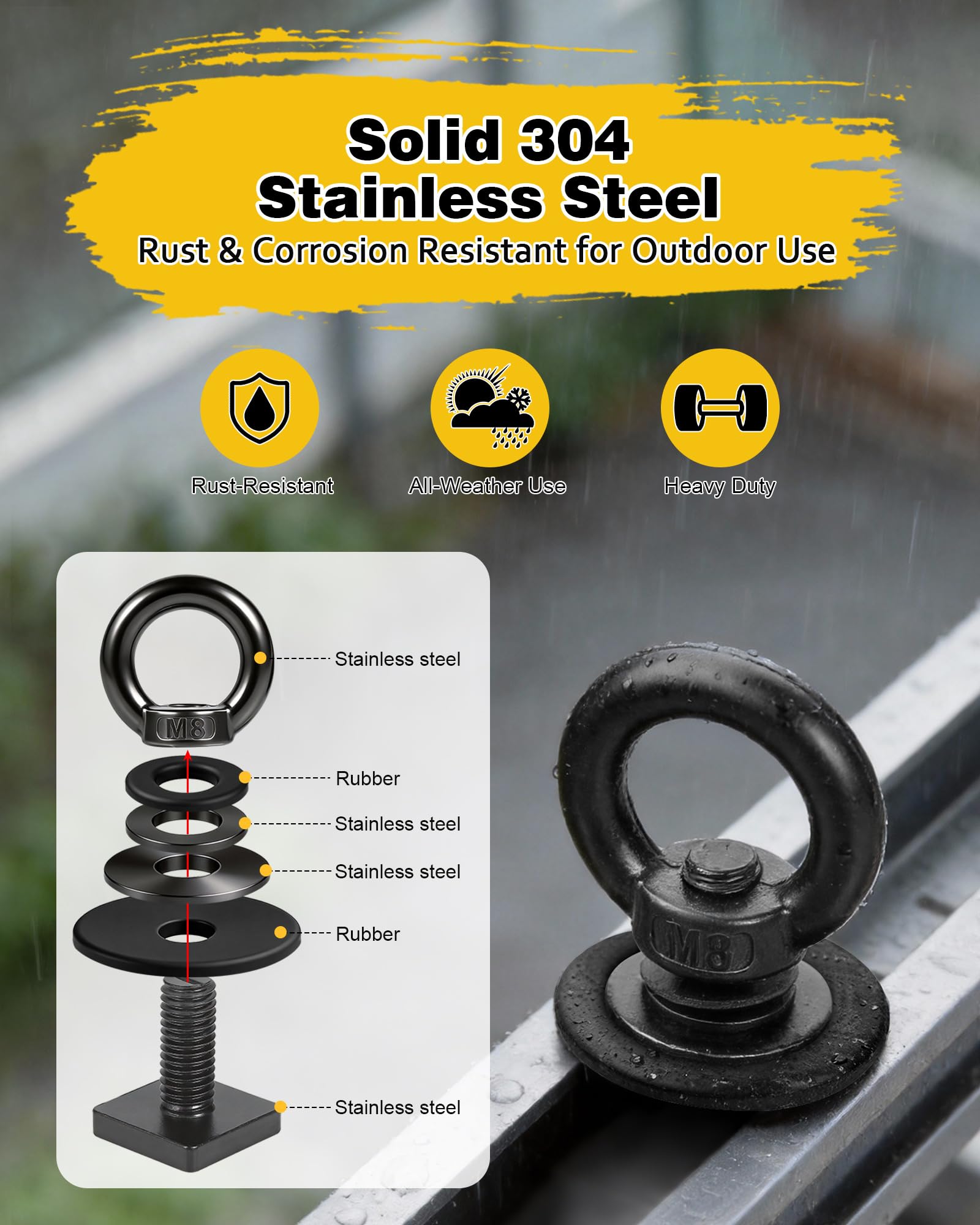 Premium Quality: Made of solid 304 stainless steel, it features rust resistant and corrosion resistance even in salt water, heavy duty hardware