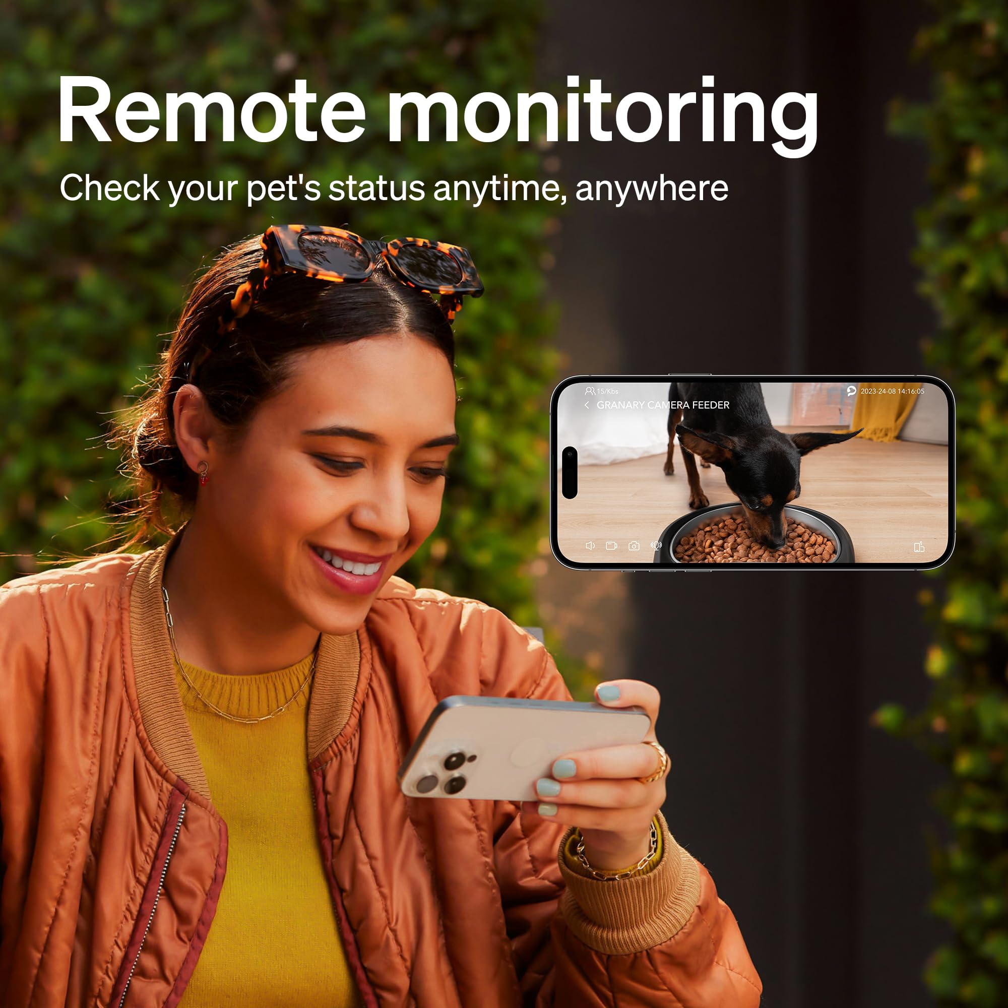 1080P HD Camera for Remote Monitoring: Using a high definition video camera with 1080P high resolution and 145° wide viewing angle, PETLIBRO smart pet feeder with camera allows you to see, hear how your beloved pet is eating when you’re on the go. And the videos can be saved on a micro SD card (not included) up to 256G, you can check the video playback in the APP to monitor your pet’s eating habits. The built-in camera supports IR night vision, enabling you to clearly see your pet in the dark