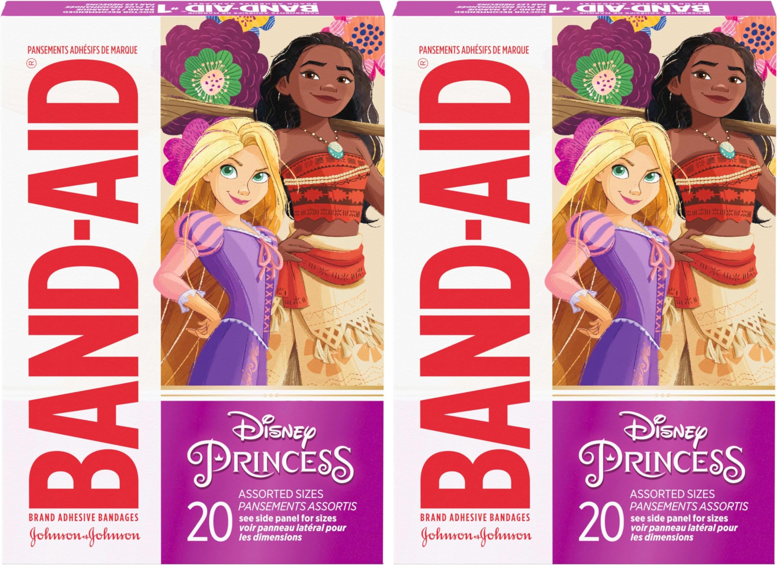 Care for your child's minor wounds and bring a smile to their face with Disney Princess Band-Aid Brand Adhesive Bandages. These first aid adhesive bandages for kids and toddlers cover minor wounds, cuts and scrapes to deliver daily wound protection. Perfect for kids and toddlers, each individually wrapped sterile bandage features Disney Princess characters from Aladdin, Rapunzel, Moana and more to make first aid more fun for your child. As part of your essential first aid supplies, the Disney decorated bandages protect minor wounds from contact with germs and dirt that may cause infection and delay healing. These sterile kids' bandages come in various sizes and are comfortable to wear thanks to a non-stick pad that won't adhere to the wound. The box contains individually wrapped sterile first aid bandages. ©Disney