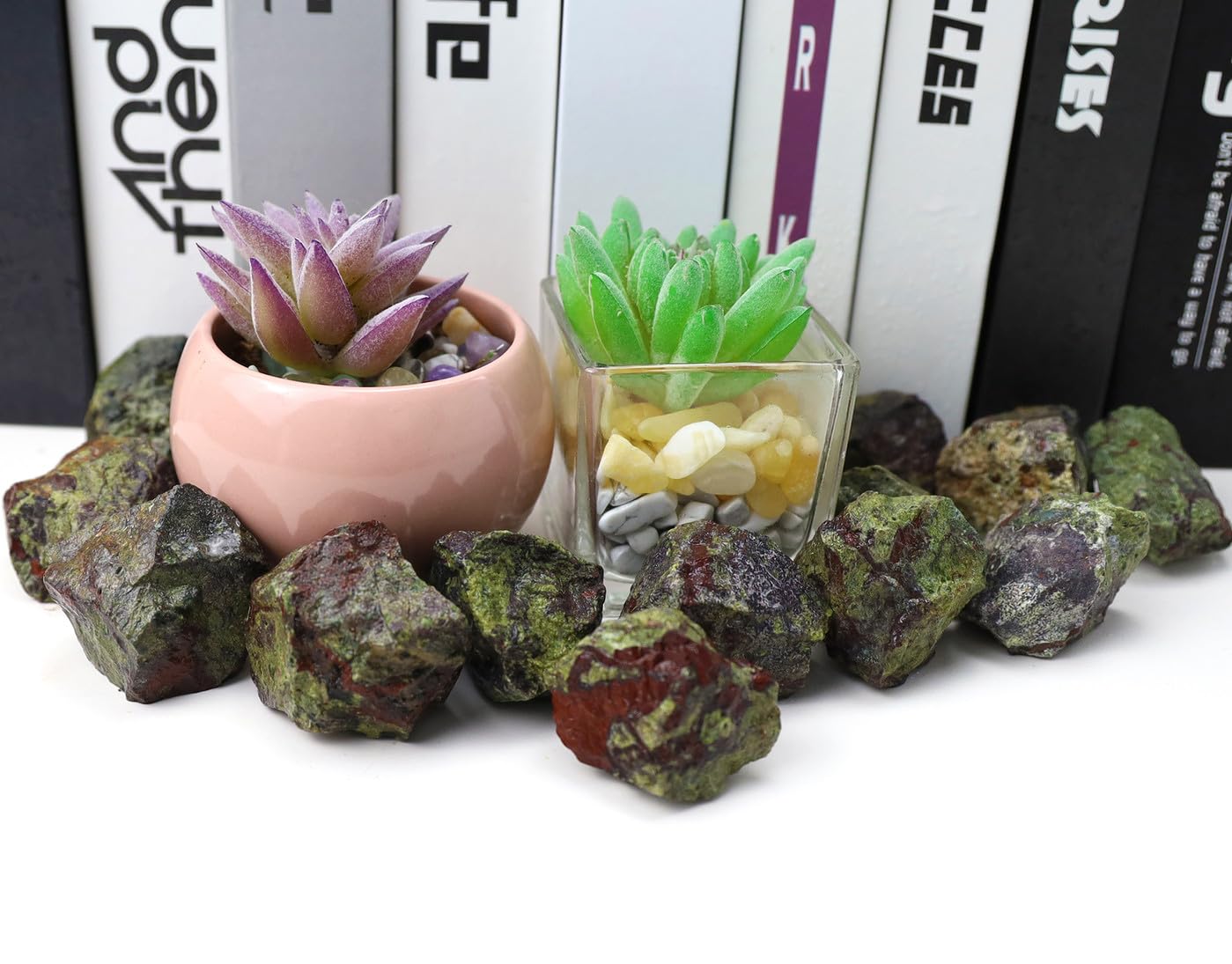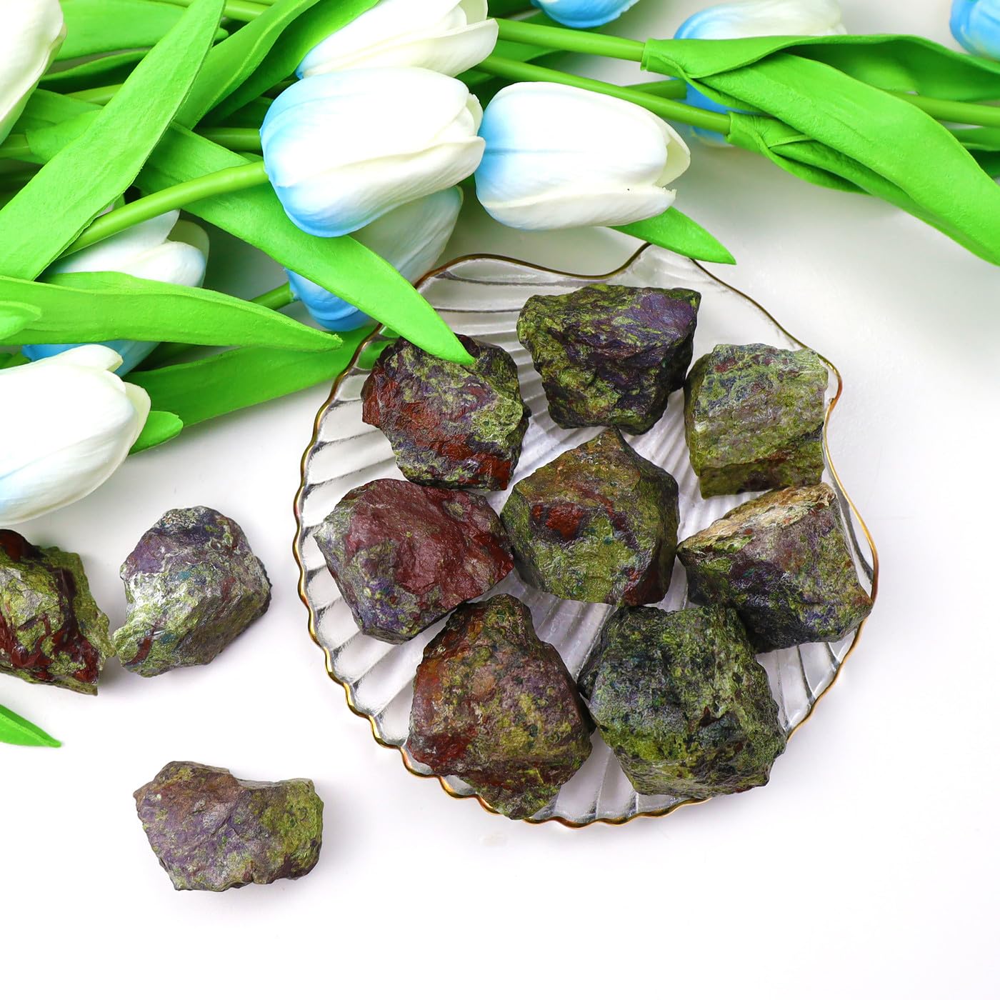 【PLEASE NOTE 】 1. These raw crystals stones make of diffrerent gemstones, carvings may slightly vary in texture color, size and shape. Each product has a unique appearance. 2. Some new small debris may be generated during transportation, please be careful not to cut your fingers when you take out the product when you receive the package. 3.If you have any suggestions for the products, you could contact us on Amazon at any time.We insist on customer first and will handle it for you immediately.