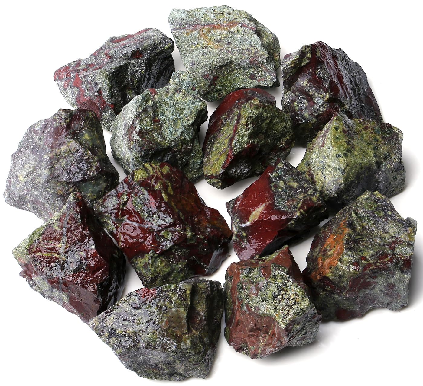 【Basic Information 】 Specification attributes : 0.9 lbs Dragon Bloodstone Raw Crystals. (approximately)Size : 0.8-1.2"; Weight : 0.9lbs/set (400 g/set). According to legend, the dragon's blood stone was discovered by the Swedish hero Beowulf after beheading the dragon's head. It has long been a symbol of courage and strength. It is a stunning addition to any home /small garden/collection cabinet or jewelry box. It is suitable as a gift for crystal lovers, crystal beginners and craft lovers.
