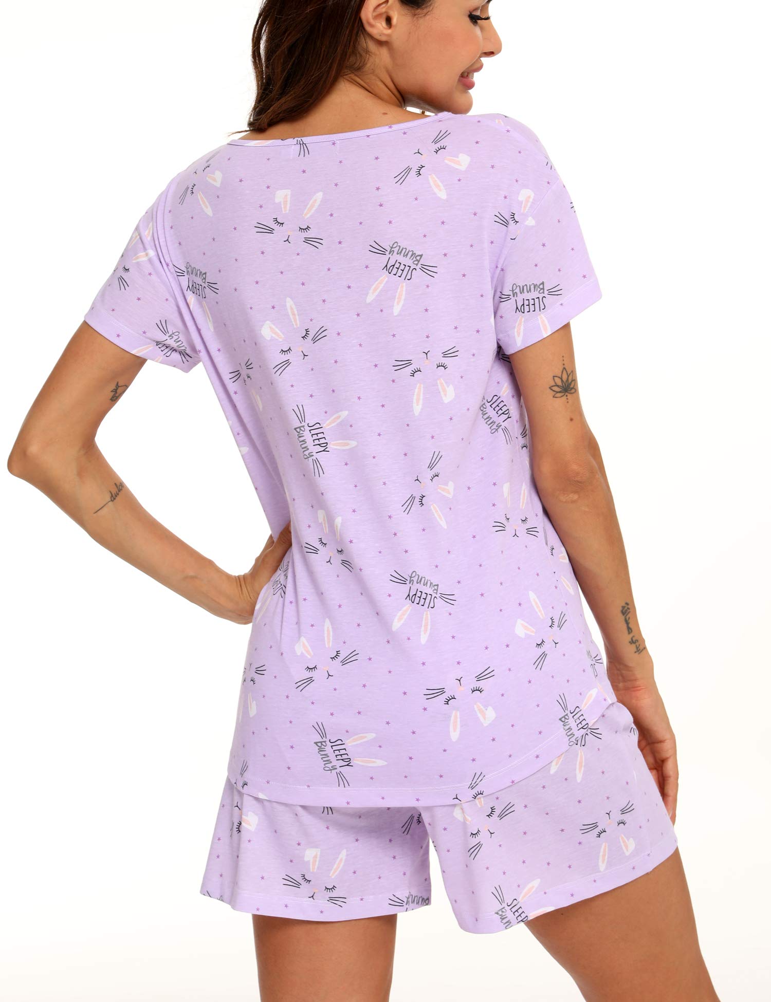 Comfy Material: Made of 60% cotton, 40% polyester, soft, non-irritating, superbly breathable, offers gentle give while maintaining its shape, summer pajama short sets bring you comfy skin touch feeling.