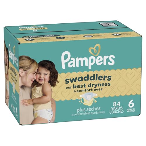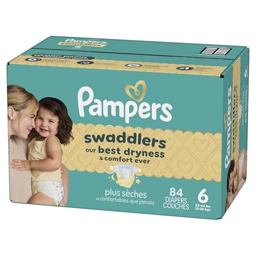 Wrap your baby in our best dryness and comfort ever. Try Pampers Swaddlers. These Pampers disposable diapers are designed with a KeepDry Liner and irresistible pillowy softness to keep your baby dry and comfortable from their very first days and beyond. Plus, they’re drier than the Luxury Diaper for all-night comfort. Pampers Swaddlers are dermatologist tested, hypoallergenic, and free of elemental chlorine, parabens, and latex** to protect babies’ sensitive skin. Pampers Swaddlers surround your baby with up to 100% blowout and leak protection, thanks to their absorbent core and All-Around LeakGuard with Blowout Barrier. Trusted by pediatricians and parents alike, Pampers Swaddlers are from the Most Awarded Diaper Brand^, the #1 pediatrician recommended brand^^, Best of Babylist winner, and the #1 choice of parents^^^. Pampers has been providing products that prioritize comfort, safety, and effectiveness for over 60 years. Earn savings while you shop with Pampers Rewards. Every 10 scans = $10 off. Scan. Earn. Repeat. Use them with Pampers Sensitive Baby Wipes for healthy skin. Pampers Swaddlers are available in preemie diapers, newborn diapers, and size 1 through size 8. To find your baby’s ideal fit, just measure by weight and reference our available baby diaper sizes. Pampers preemie diapers (up to 4 lbs.), newborn diapers (up to 10 lbs.), size 1 diapers (8–14 lbs.), size 2 diapers (10–22 lbs.), size 3 diapers (13-26 lbs.), size 4 diapers (15–34 lbs.), size 5 diapers (20-37 lbs.), size 6 diapers (23-34 lbs.), size 7 diapers (26-50 lbs.), size 8 diapers (30+ lbs.). *Based on S4 Luxury Diaper Brand. 3 typical wettings of 75mL **No natural rubber. ^ Based on Awards Given 2021-2025 ^^ Based on 2024 survey of U.S. and Canadian pediatricians. ^^^ Based on Nielsen dollar sales L52W