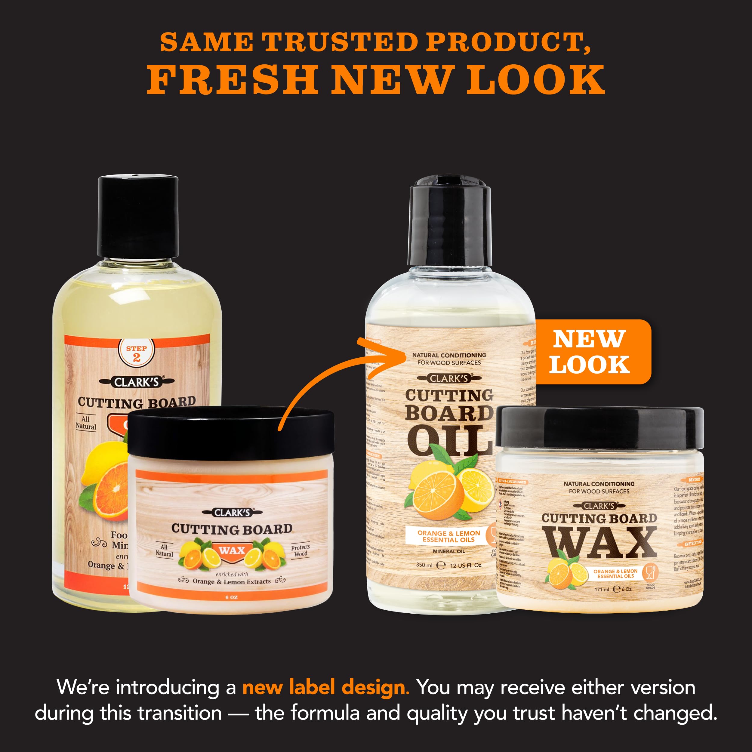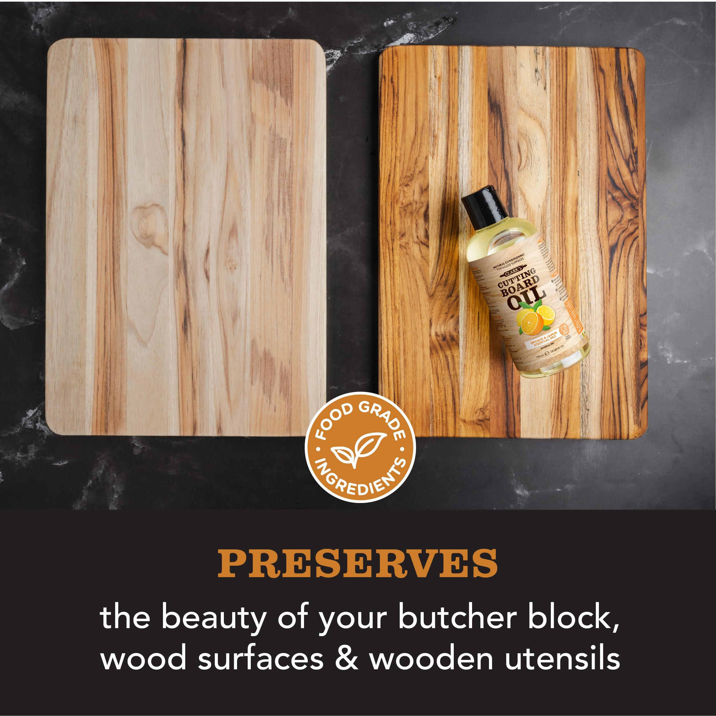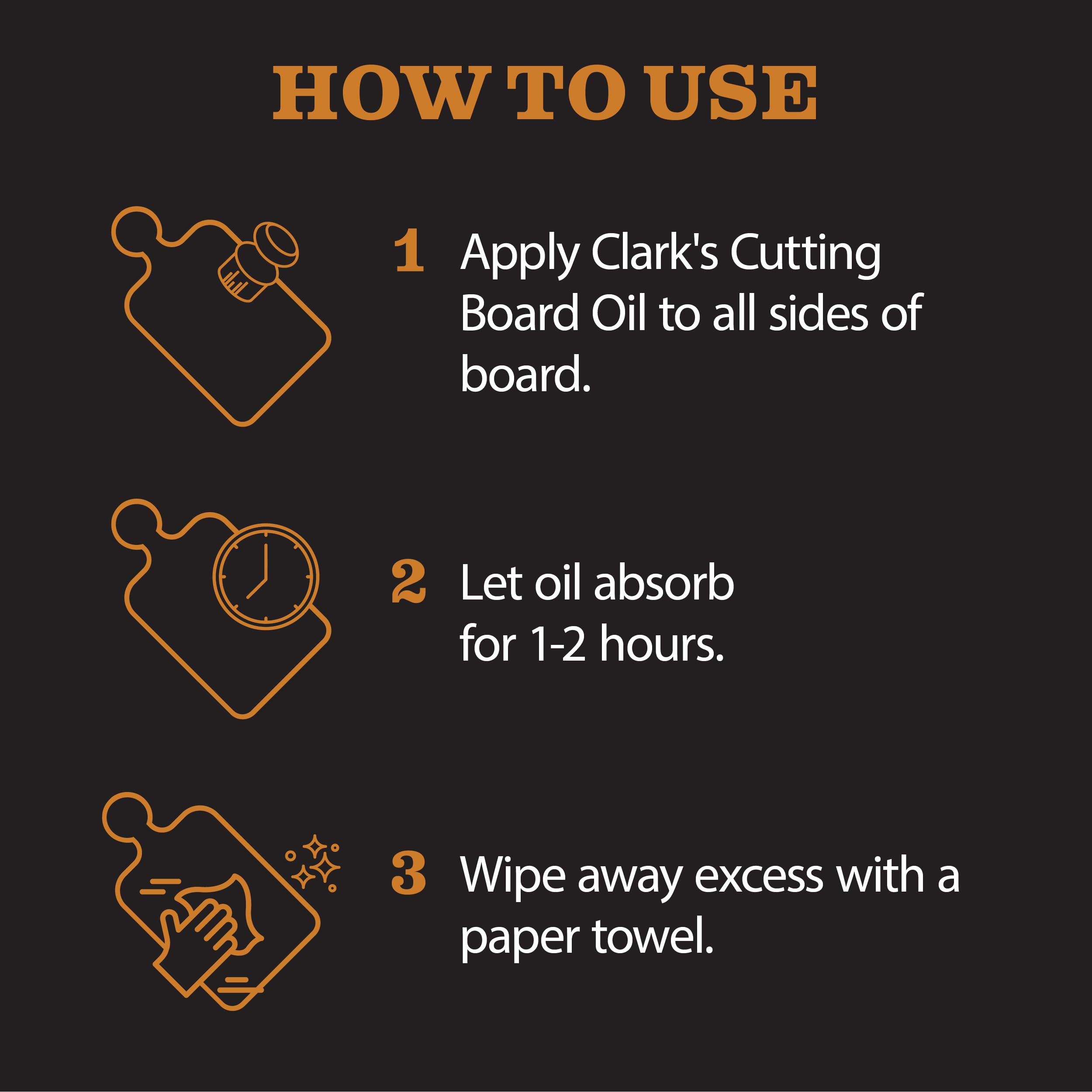 PERFECTLY PAIRED - CLARK’S food grade mineral oil for wood cutting board and CLARK’S wood wax are designed to work seamlessly together. We always recommend using them both for the best results.