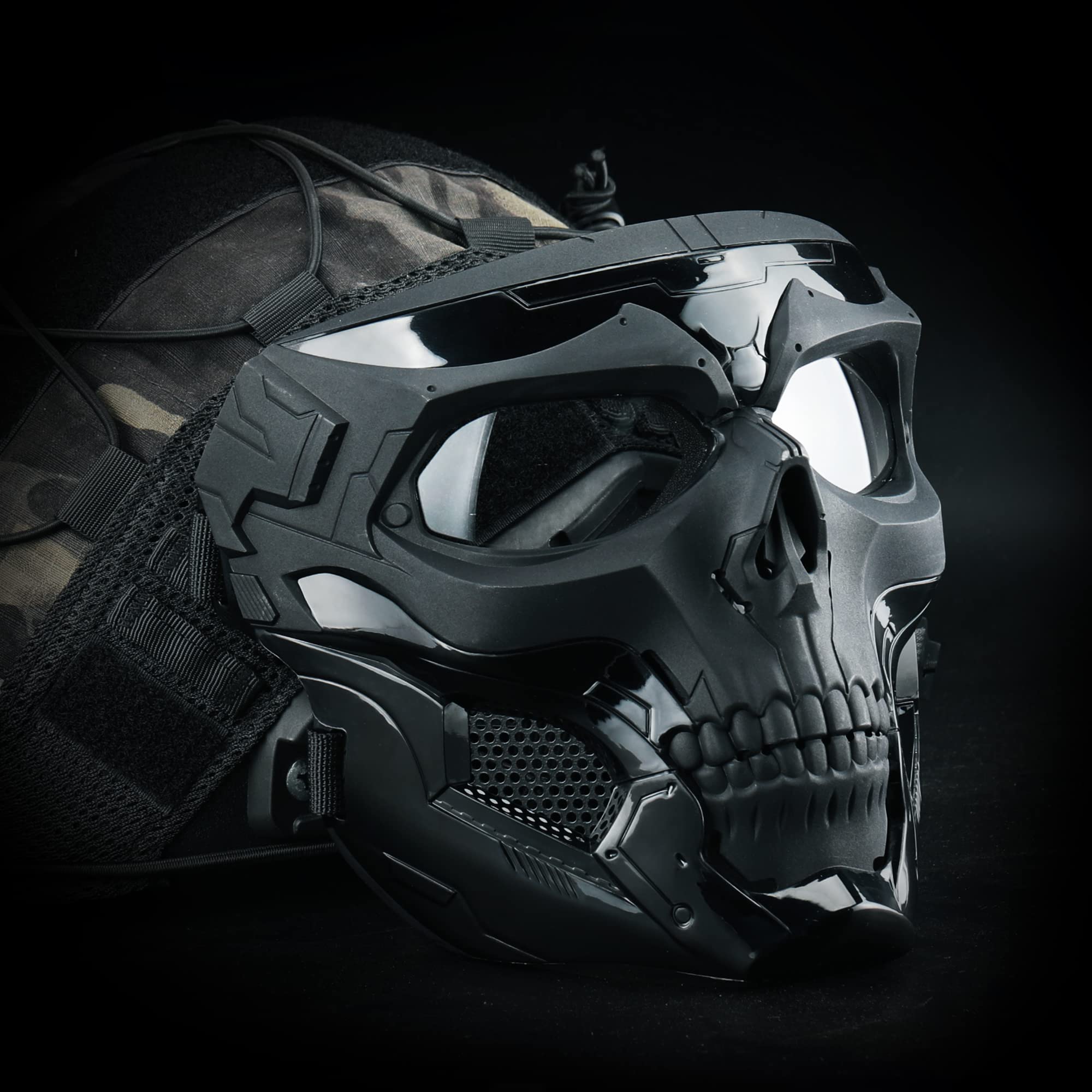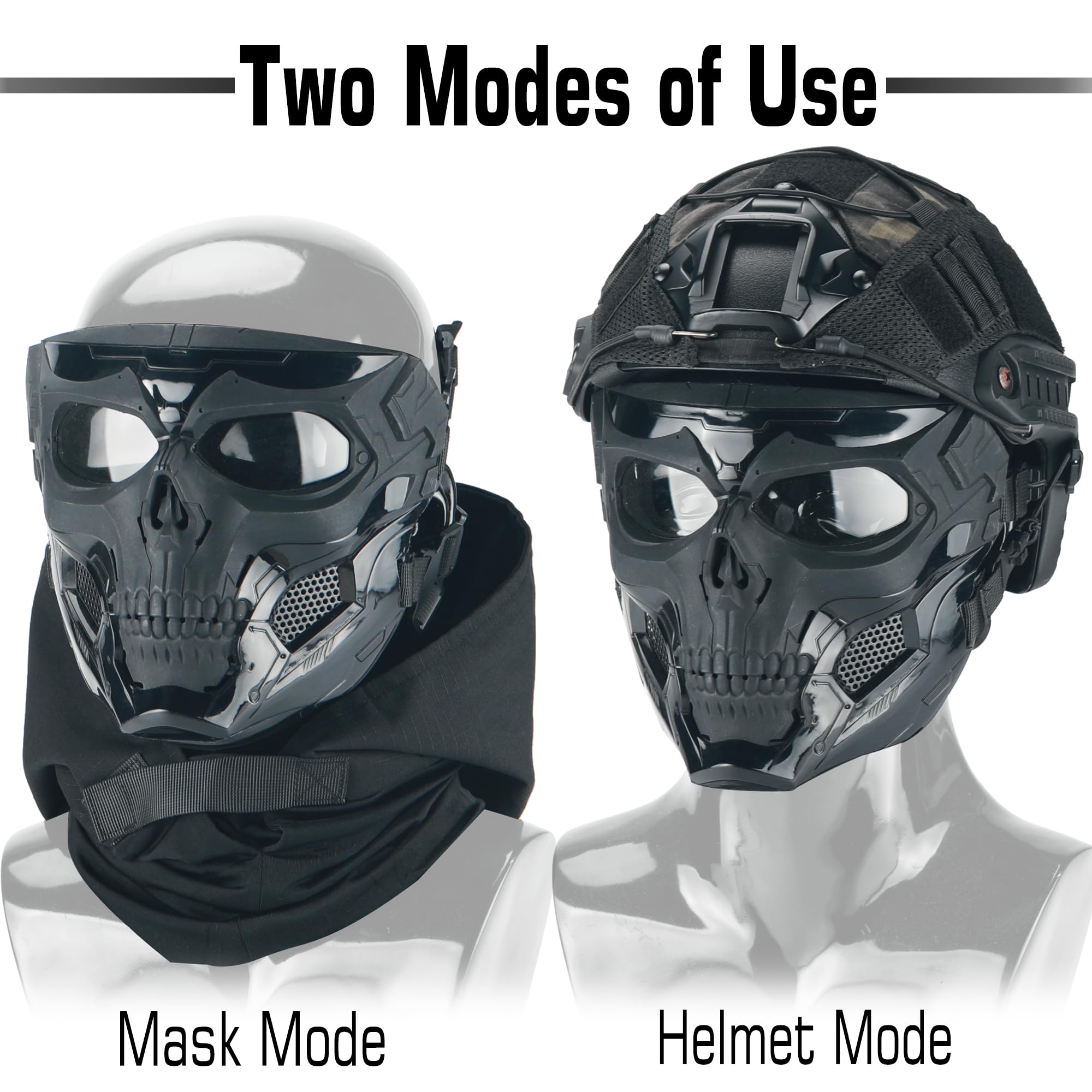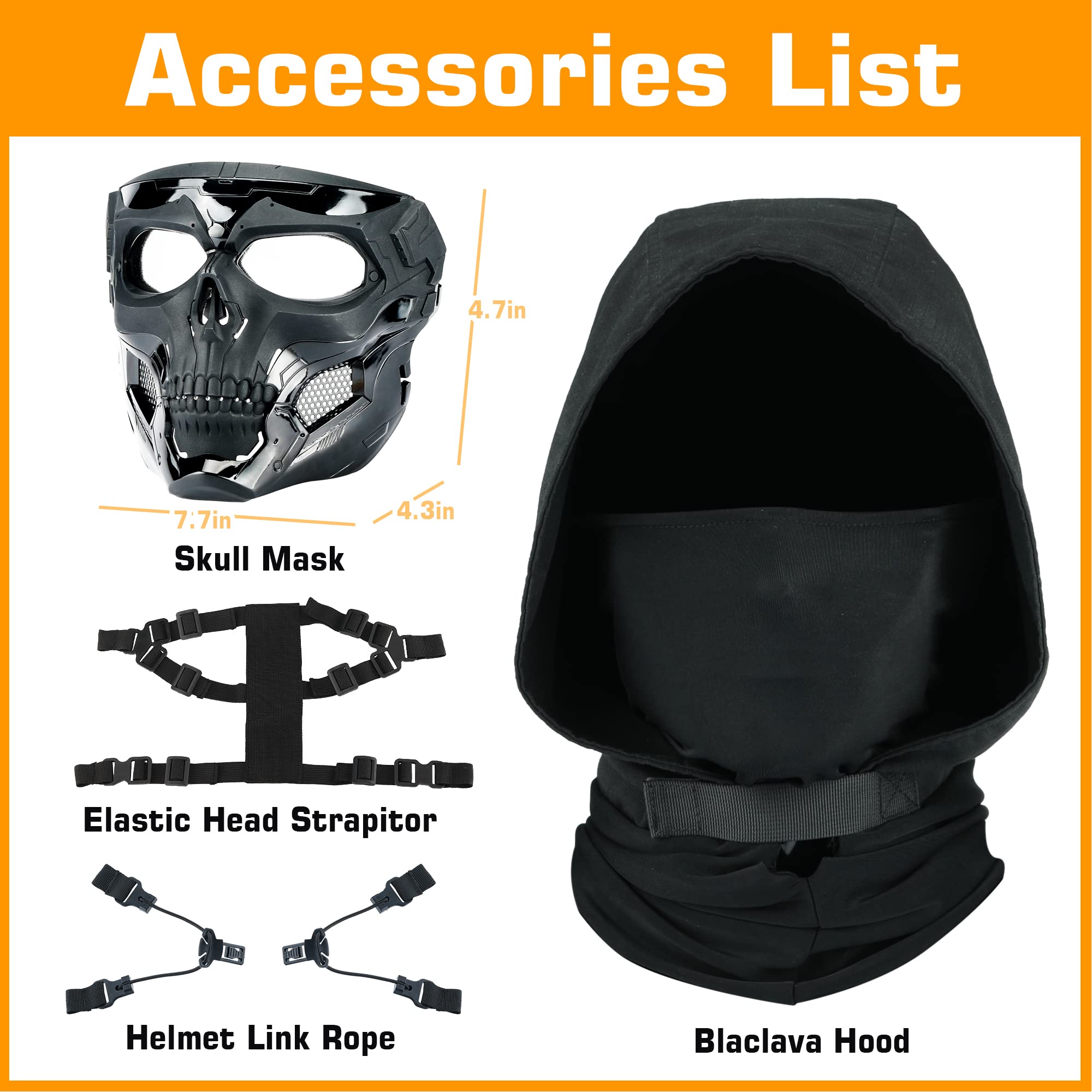 [ Tactical Mask For Helmet ] : This skeleton mask can be attached to your fast helmet with helmet link rope,great for tactical survival game, Live CS,BB competition.At size 7.7"x7"x4.3"-One size fits most teens and adults ( around 20"-24" head size)