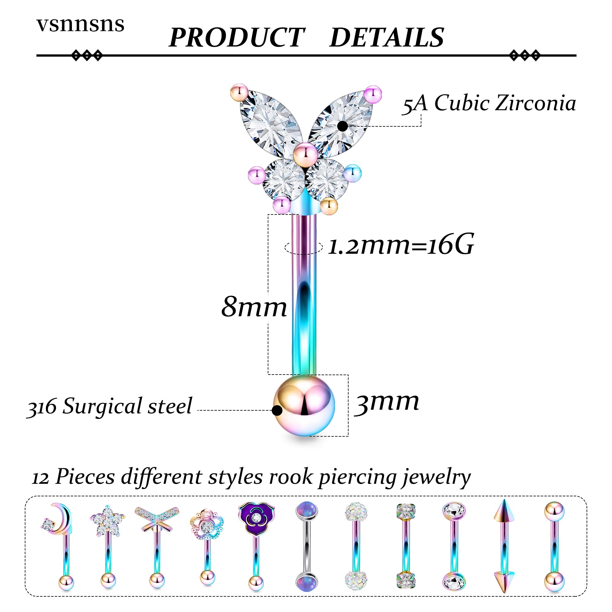 [SUITABLE FOR USE]: These Eyebrow Piercing Jewelry Can Be Used For Eyebrow Rings, Eyebrow Jewelry, Eyebrow Piercing, Rook Piercing Jewelry, Daith Piercing Jewelry, Vertical Labret Lip Jewelry, Small Belly Button Ring, Rook Earrings, Daith Earrings.