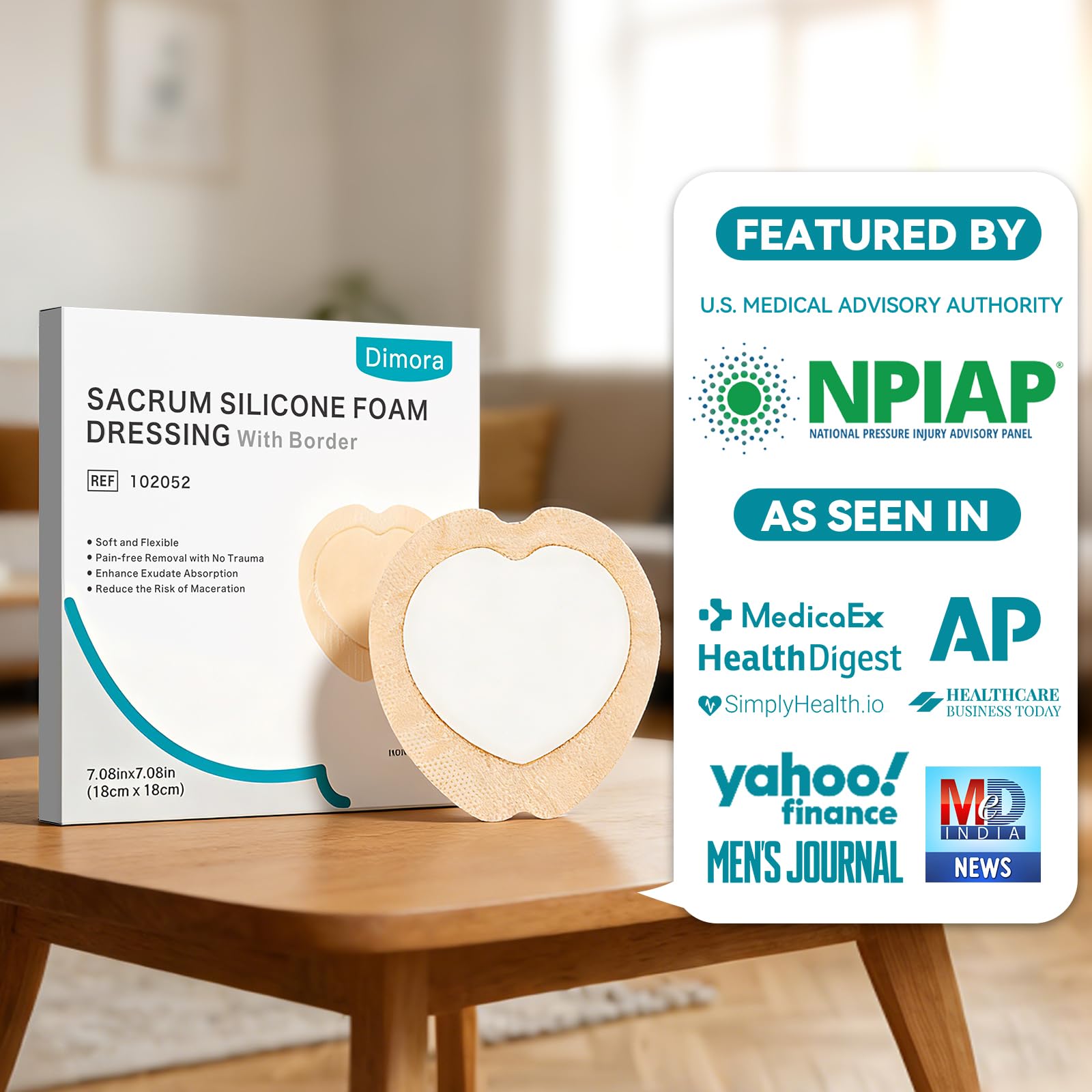 MULTI-USE WOUND CARE PRODUCTS- Border 7""x7"" is fit for wounds within 5.5""x4.9""(foam pad size), useful for moderately to high exudating wounds, such as sacrum bedsore wounds(Stage 1-4), surgical incisions, pressure ulcers, neuropathic ulcers, arterial ulcers, skin tears, burns. Used in hospitals, senior care homes, hospices, and other medical facilities