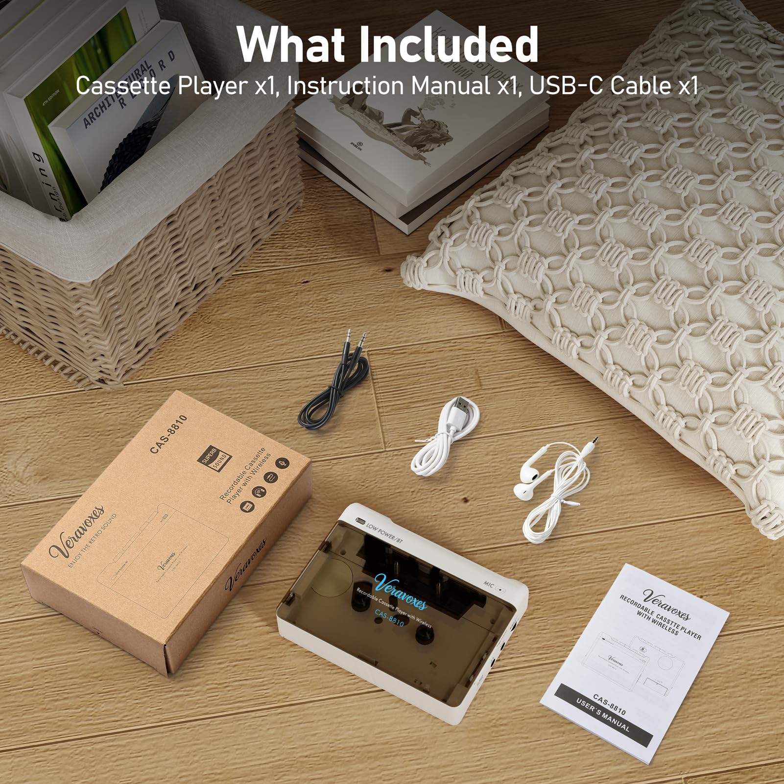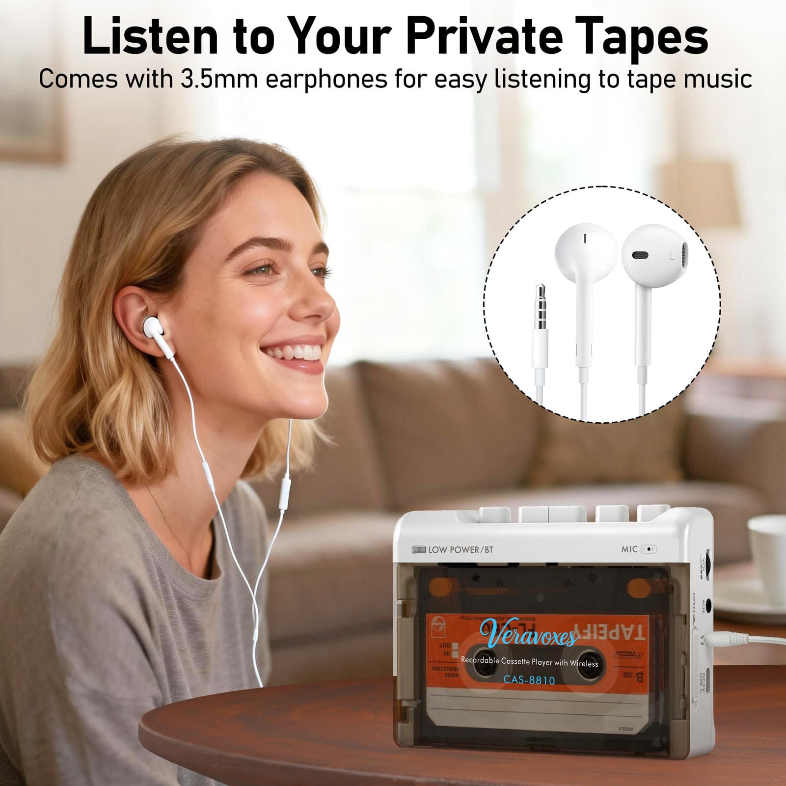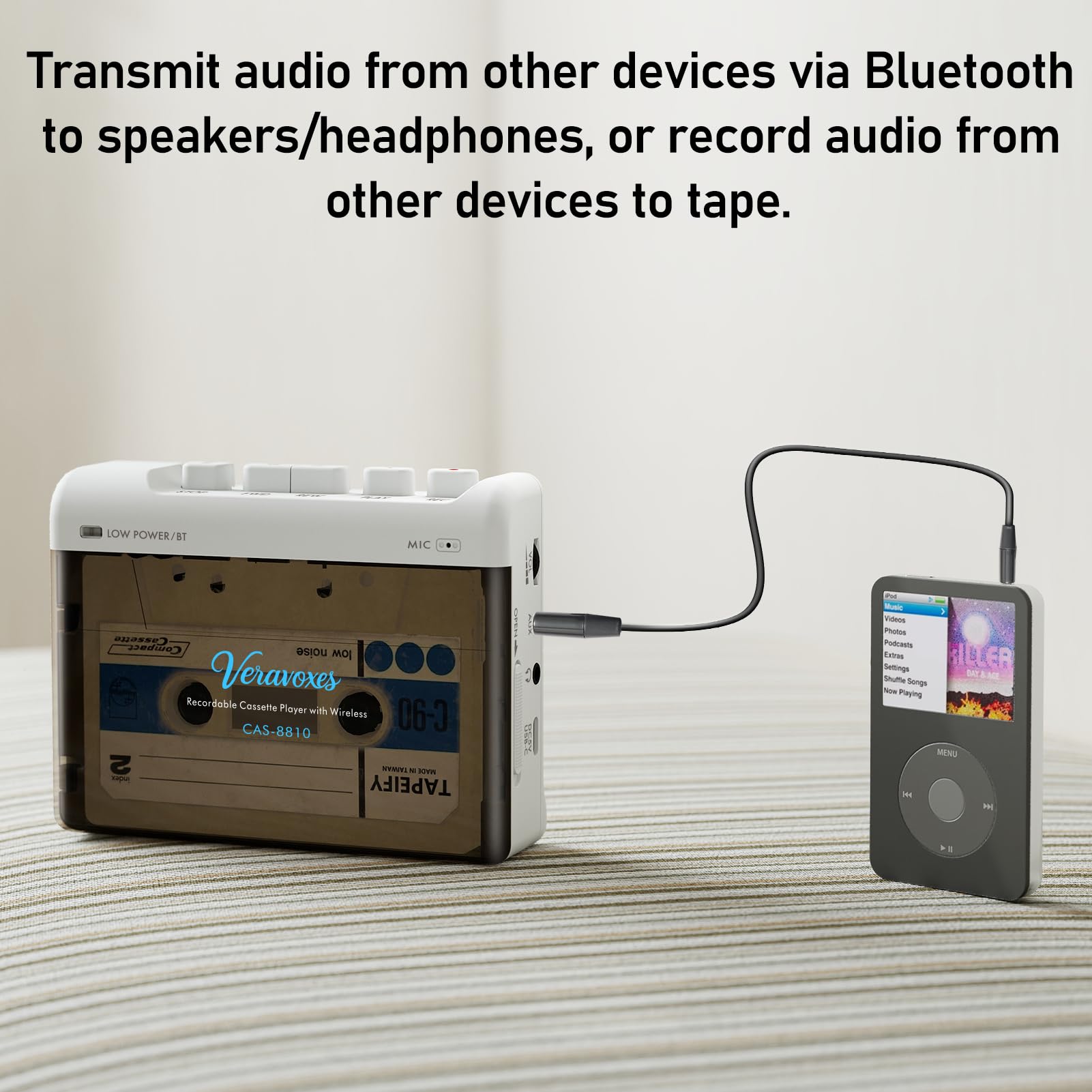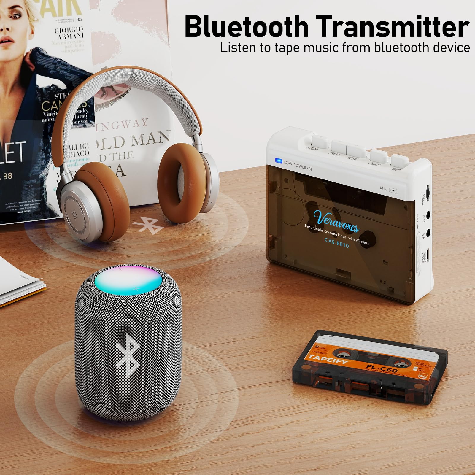 【Bluetooth Cassette Player】This portable cassette player features a Bluetooth 6.0 transmitter for faster, more stable connections. Easily pair with Bluetooth headphones or speakers to wirelessly enjoy cassette music. Note: Bluetooth transmission is solely for connecting Bluetooth headphones/speakers to listen to cassette music. It cannot be used to connect to a phone for music playback (does not support in-car Bluetooth connection).