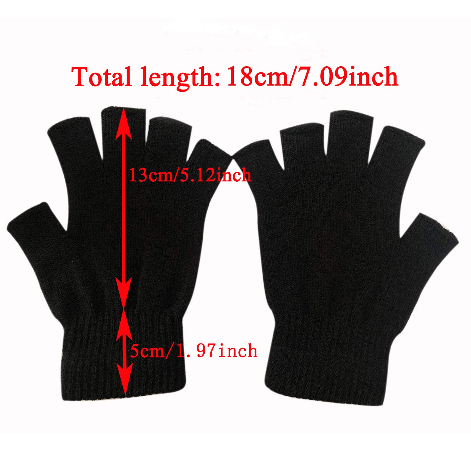 Description 2 Pair Half Finger Gloves Winter Knit Touchscreen Warm Stretchy Mittens Fingerless Gloves in Common Size for Men and Women, black Our Half Finger Gloves are made of acrylic fiber, soft & comfortable, warm you up in the cold weather. Breathable material make sure your hands do no sweat. Winter Knit gloves fits both men and women, stretchable and in common size, suitable for most people easily Black color will not show the dirt, convenient for you to wear and change in the daily life Half-Finger Design, handy for you to use. The golves allow you working flexibly, keep hands thermal and cozy while texting, typing, writing, cycling, running, driving... Package include 2 pairs of fingerless gloves. If you have any problems with our product and service, Contact US Immediately, we are always here to give you a satisfactory solution