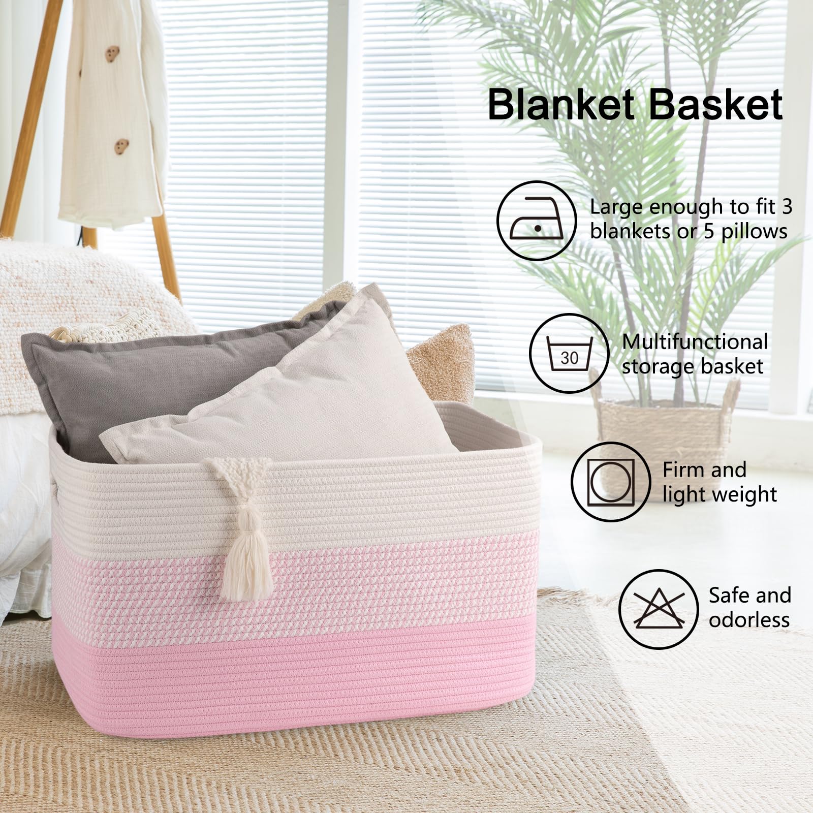 Decorative Blanket Storage for Living Room:This rectangular blanket basket is more stable and easier to restore its sahpe after you receive the package. The 22ββ x 17ββ x 12ββ large storage basket can also used to store blankets, pillows, cushions, toys, clothes and towels
