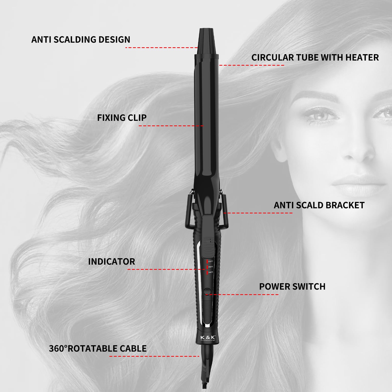 110V -220V WORLDWIDE VOLTAGE: Dual voltage design allows you to use the hair curler while traveling; 360° swivel power cord (8.2ft) give you freedom to adjust the hair curling iron, and comfortably style your hair at any angle.