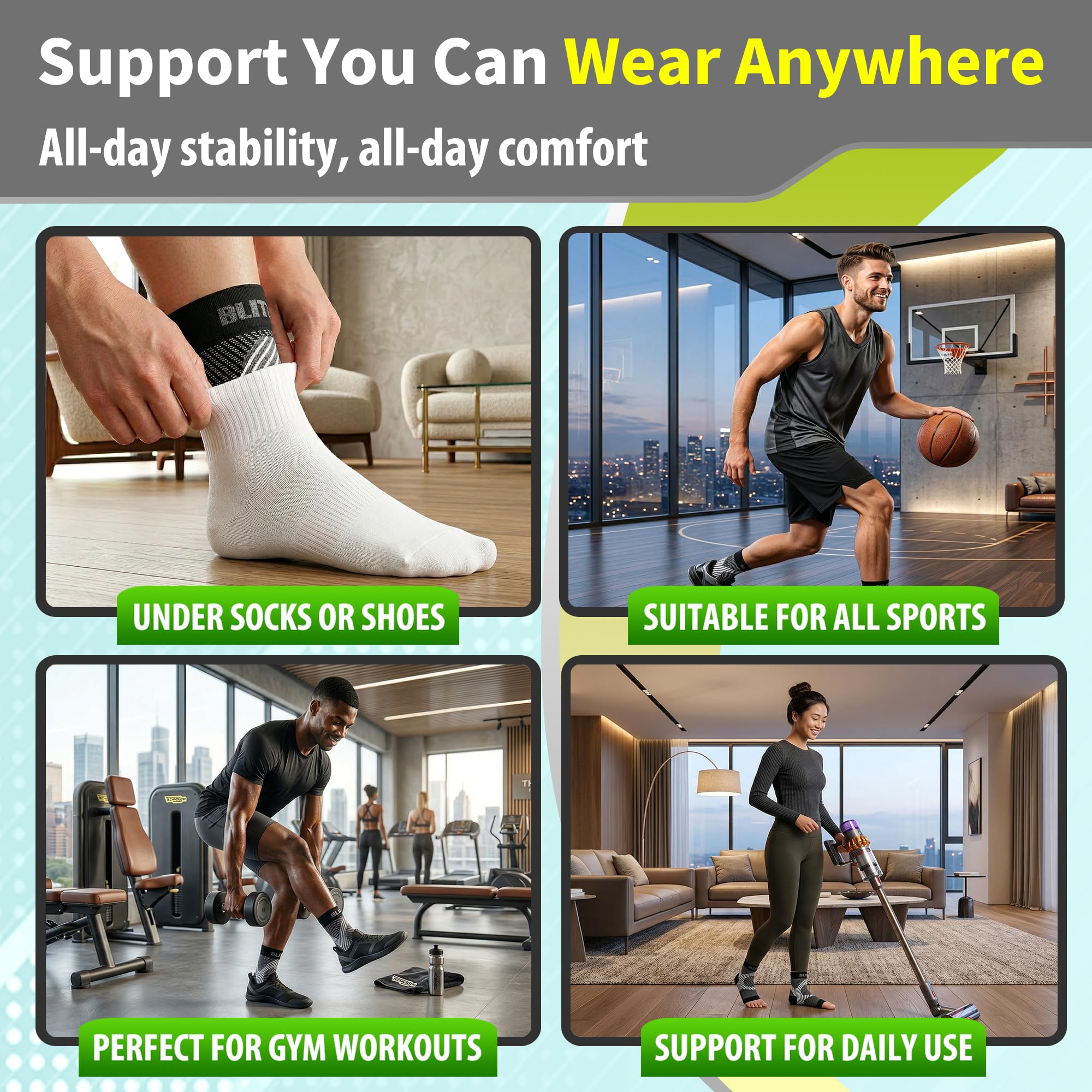 Plantar Fasciitis & Ankle Pain Relief: Our ankle brace provides effective plantar fasciitis relief, reducing foot and ankle pain from conditions like Achilles tendonitis and ankle sprains. Perfect for both women and men needing ankle support for daily activities or sports.