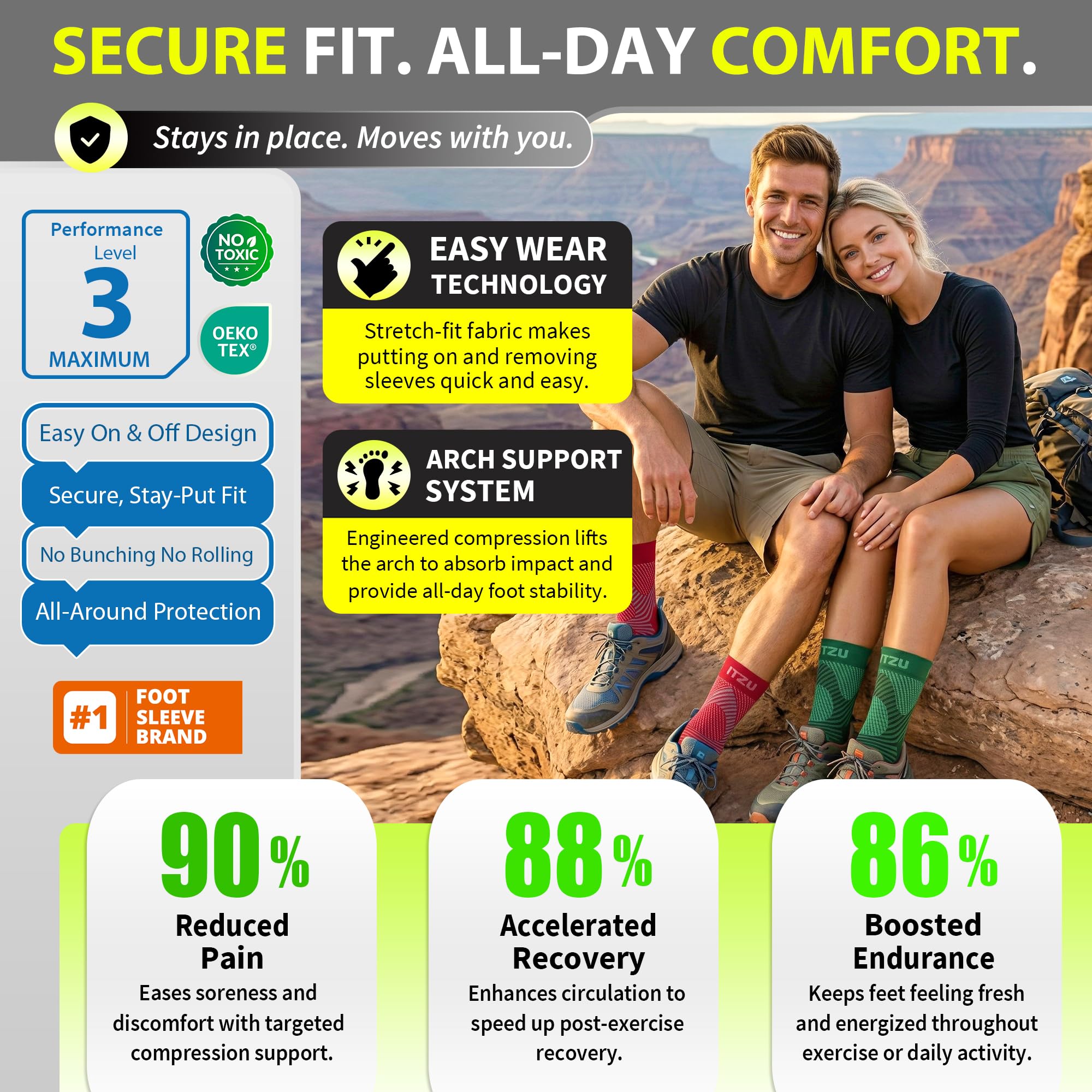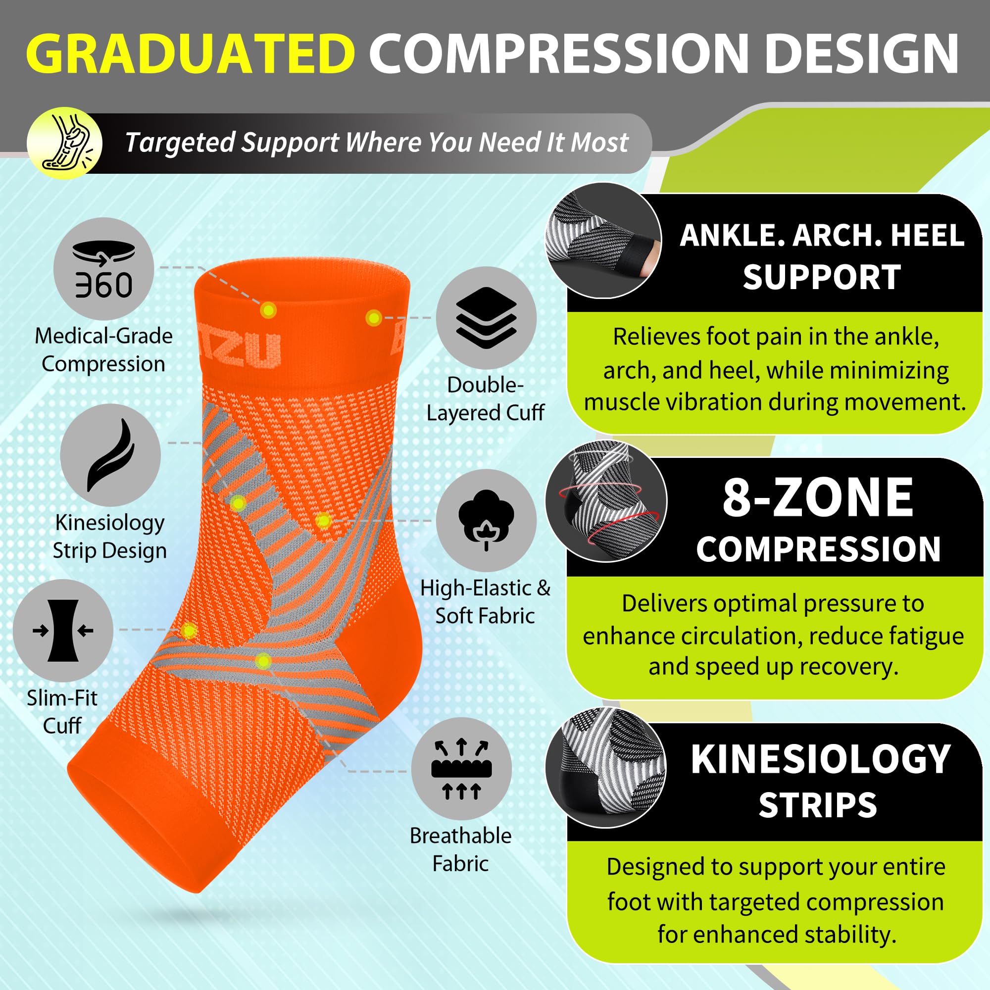 Breathable & Adjustable Ankle Compression: The breathable fabric of our ankle compression socks ensures all-day comfort while promoting healing. Perfect for managing ankle sprain relief, Achilles tendon support, and improving blood circulation.