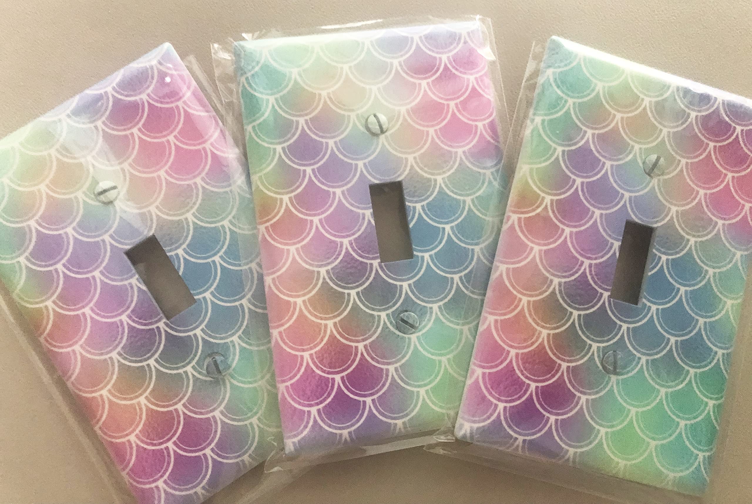 Single Toggle Mid-size Light Switch Cover Plate 3" x 5”, Printed Design w/ screws matching the design.