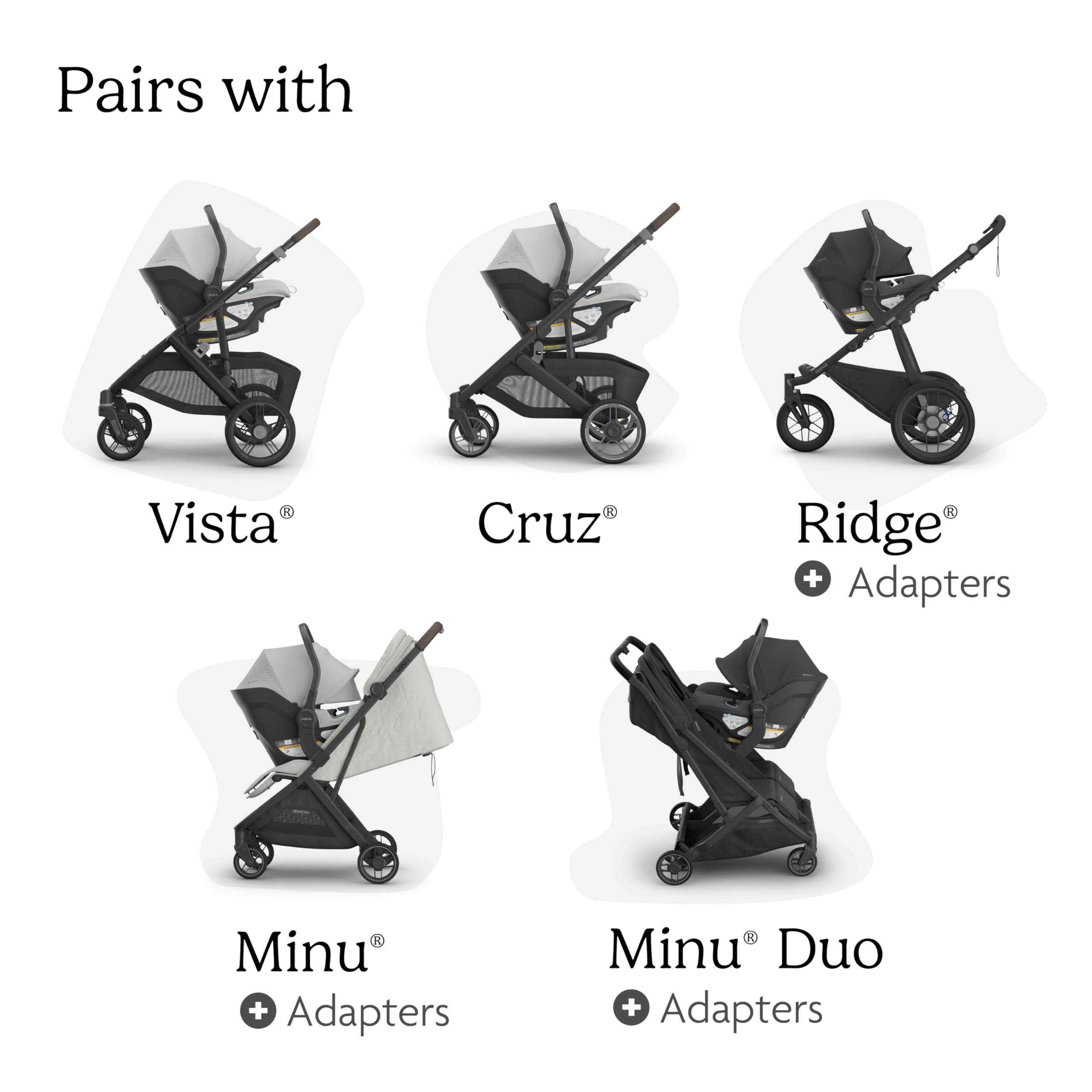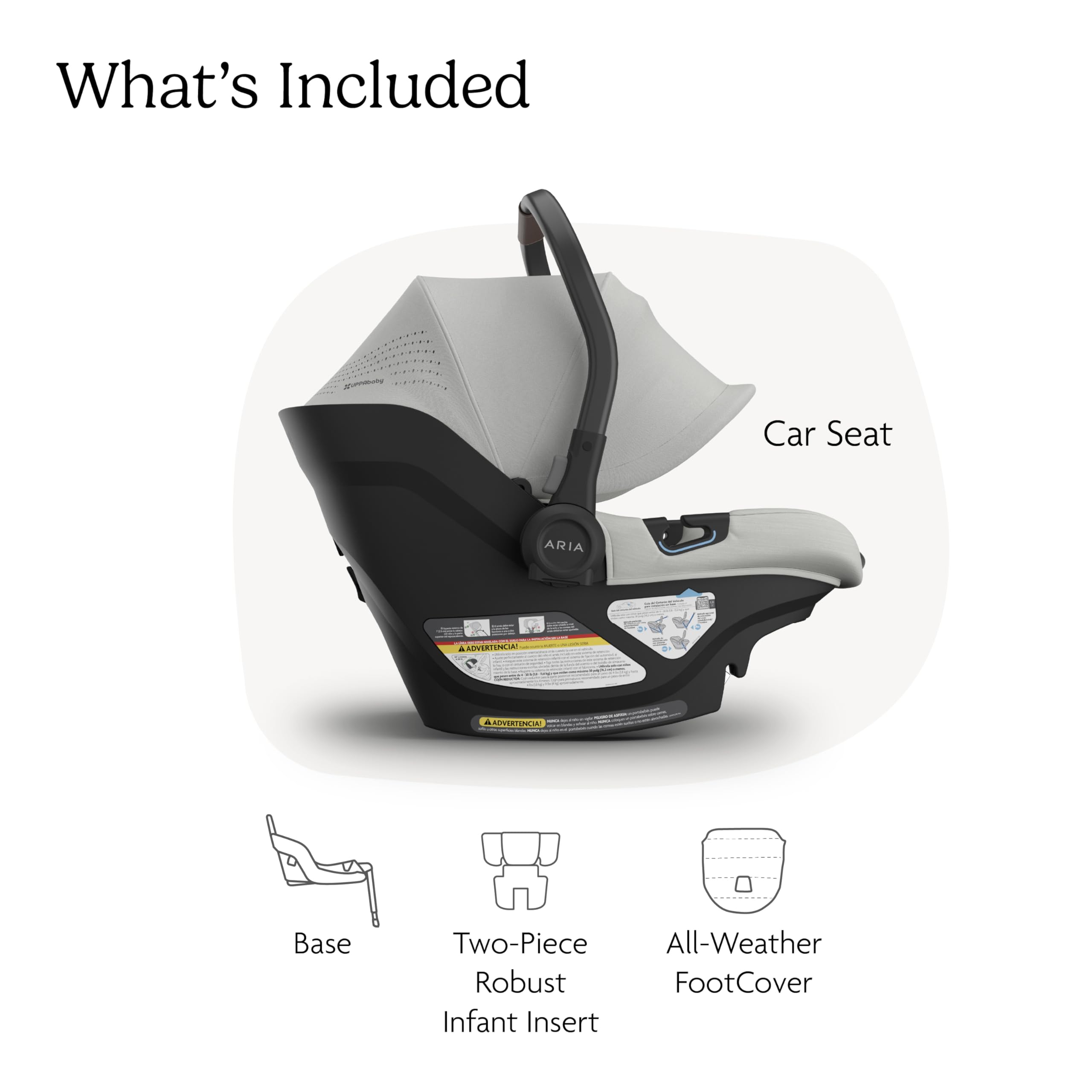 The Aria V2 Lightweight Infant Car Seat redefines on-the-go travel, weighing just 6 lbs, making it one of the lightest infant car seats available. Designed for safety, comfort, and convenience, it features SmartSecure® technology for quick and secure installation, an Anti-Rebound+ Panel and Load Leg for added stability, and advanced Side Impact Protection with energy-absorbing EPP foam. This rear-facing infant car seat grows with your child with a 25-position adjustable headrest and extra legroom for longer use, while the extra-large sun canopy, back panel ventilation, and included All-Weather FootCover keep baby cool, shaded, and comfortable in any season. The Aria V2 easily transforms into a travel system car seat, attaching directly to UPPAbaby Vista® and Cruz® strollers, with adapters available for Minu® and Ridge®, making it the ideal car seat and stroller combo for parents on the go. Parents will appreciate its ergonomic aluminum carry-handle, simple one-crotch buckle position, and easy-release base for stress-free transitions from car to stroller. With a slim 17-inch wide footprint to maximize backseat space, FAA certification for airplane use, machine-washable fabrics, and fire-retardant-free DualTech™ materials, the Aria V2 is the ultimate choice for families looking for a lightweight, travel-ready, newborn car seat that delivers uncompromising safety and everyday convenience.