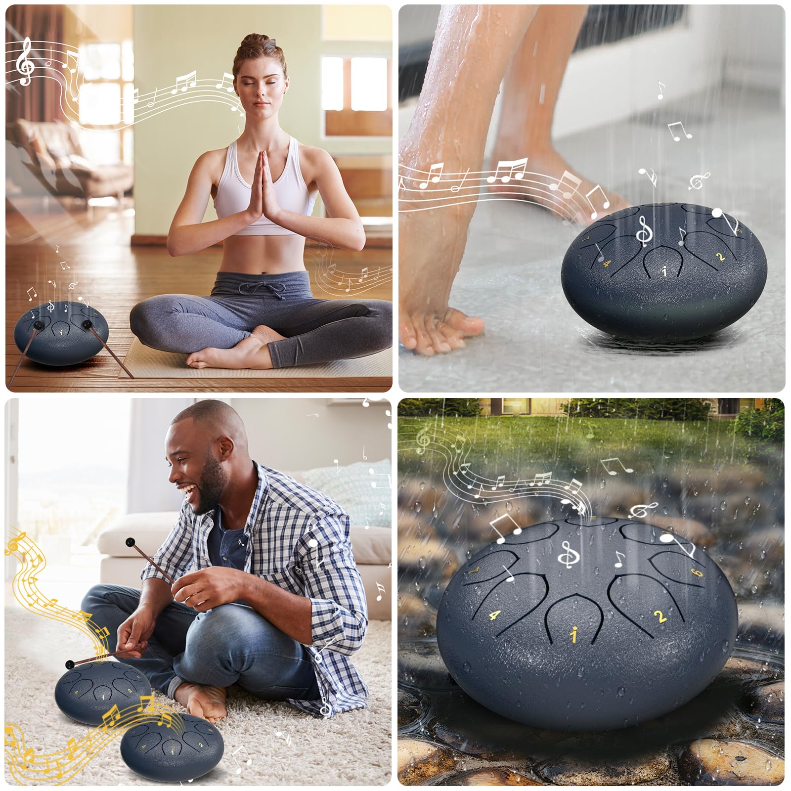 UNIQUE GIFT FOR FRIENDS: The steel rain drum's calming sounds bring clarity and peace of mind, making it a thoughtful gift for loved ones. Easy to play with musical drumsticks or by the natural strike of rain. This tongue rain drum will be a unique present for women, or men, as Christmas, birthdays, get-well wishes, or white elephant exchanges.