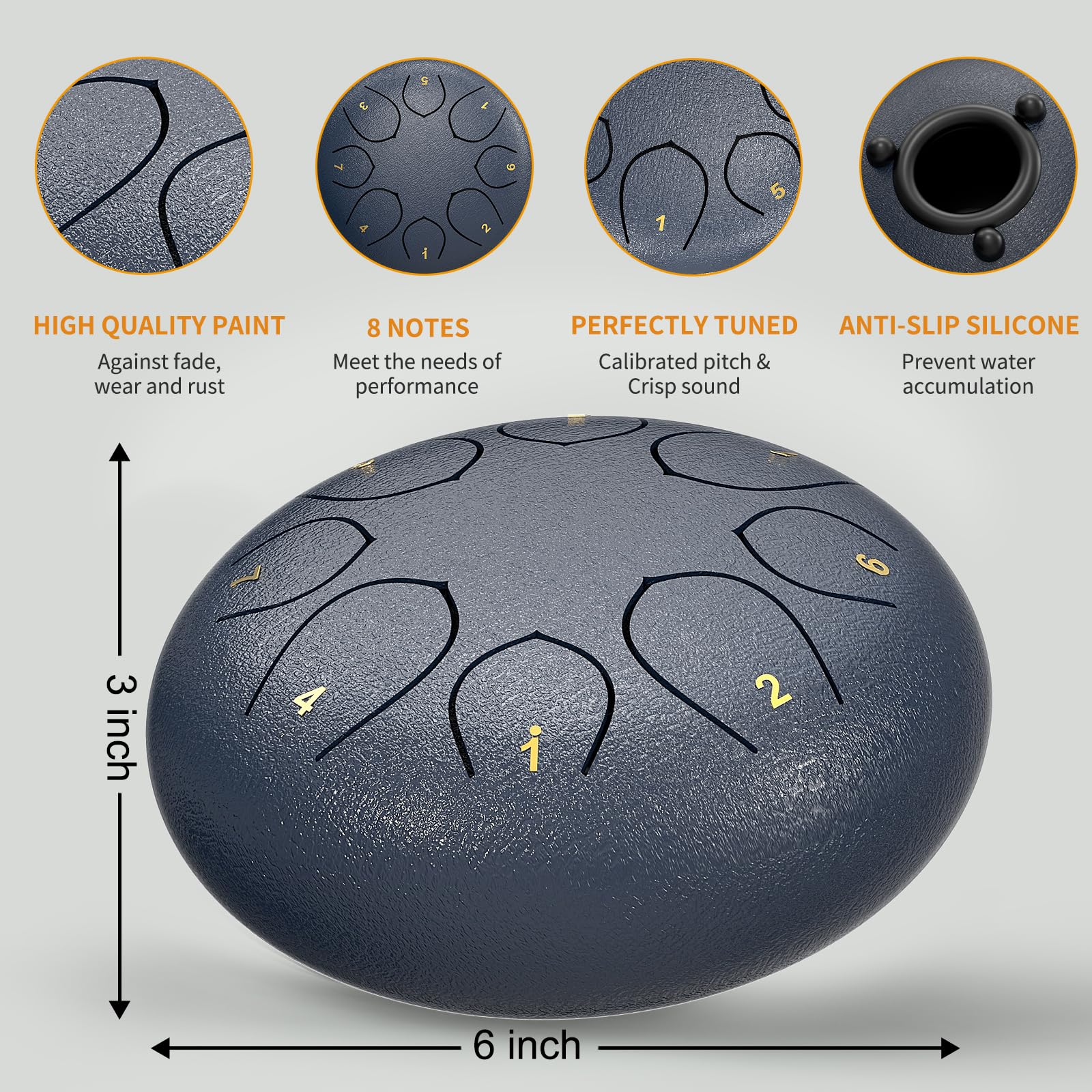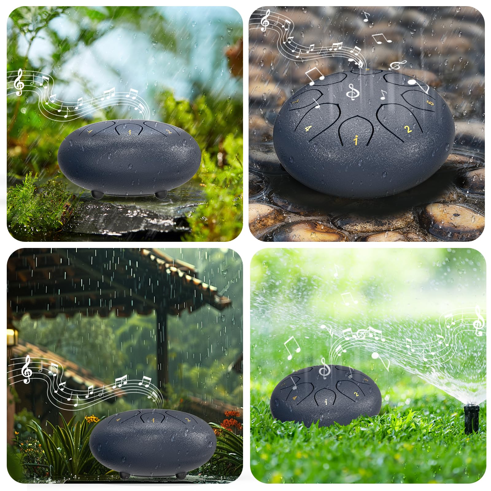 HIGH-QUALITY CRAFTSMANSHIP: Expertly crafted, this 6-inch chakra drum for rain is made from titanium alloy and coated with paint for exceptional corrosion and rust resistance, and can withstand various weather conditions. Each steel tongue drum is hand-tuned and precisely cut to ensure achieve accurate tones and harmonies.