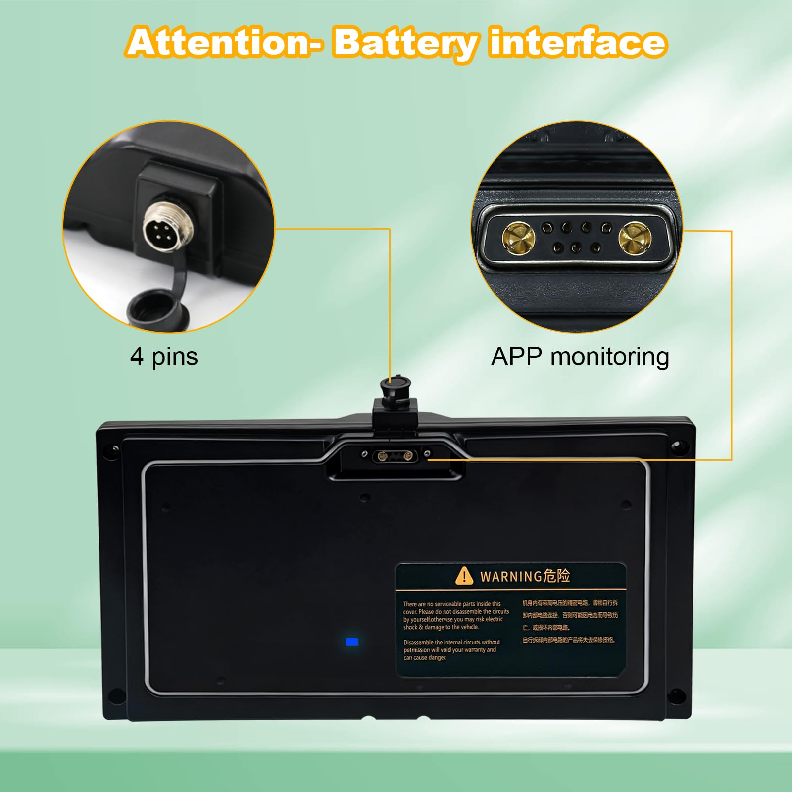 【Battery size】12.2*9.45*1.57in(31*16*4cm), weight: 4.5lb(2.1kg). High energy density batteries can provide longer range for the same size and weight, thus reducing the need for frequent recharging and providing a better user experience